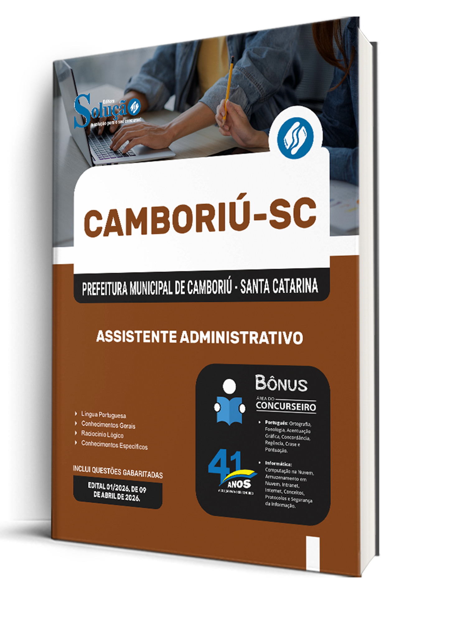 A Apostila Prefeitura Municipal de Camboriú - SC 2026 - Assistente Administrativo foi organizada para proporcionar um melhor rendimento na sua preparação, abordando cada conteúdo de forma objetiva e direcionada. Estude para o Concurso da Prefeitura Municipal de Camboriú - SC 2026 com um material de acordo com o Edital oficial para o cargo de Assistente Administrativo.