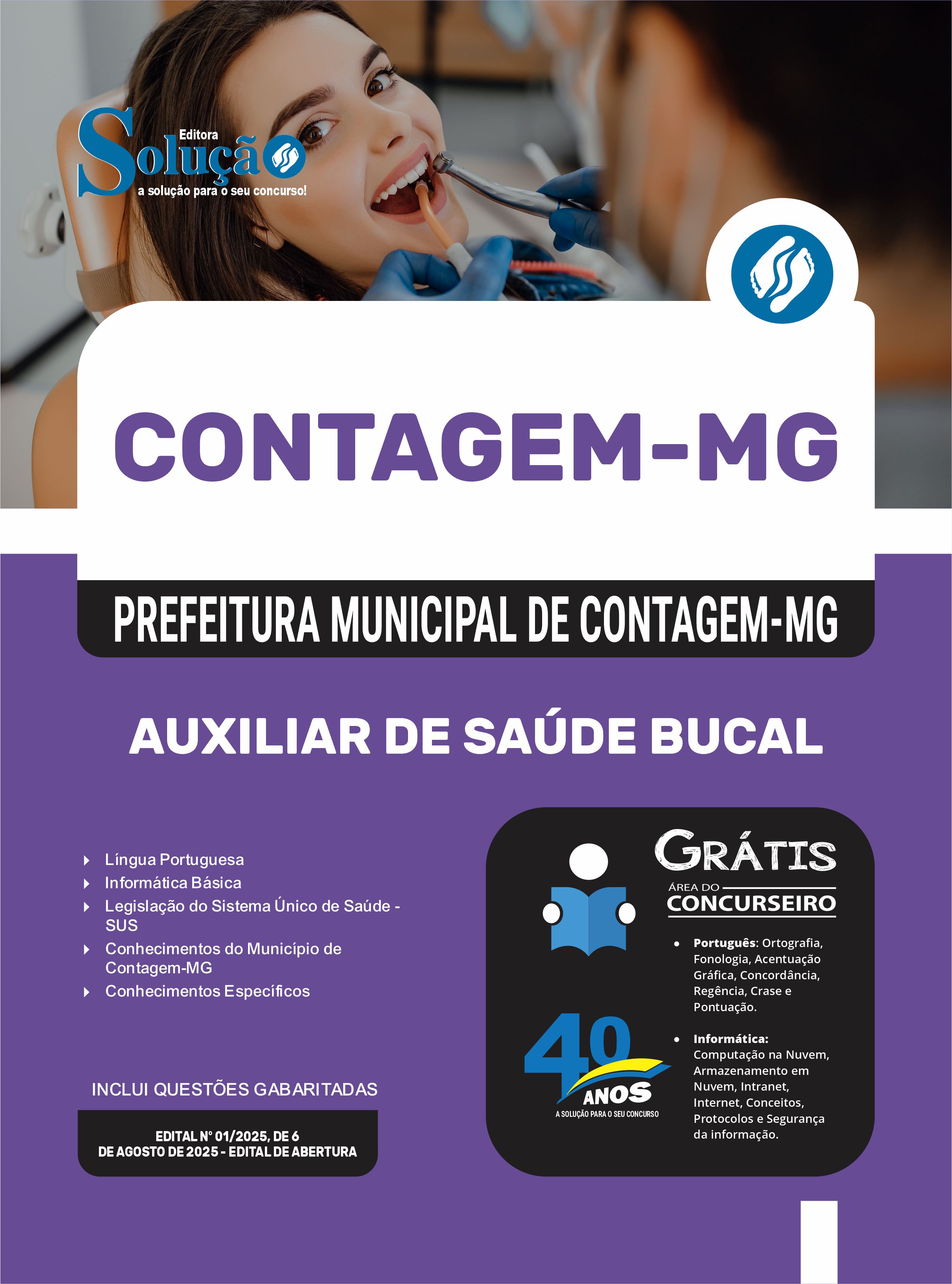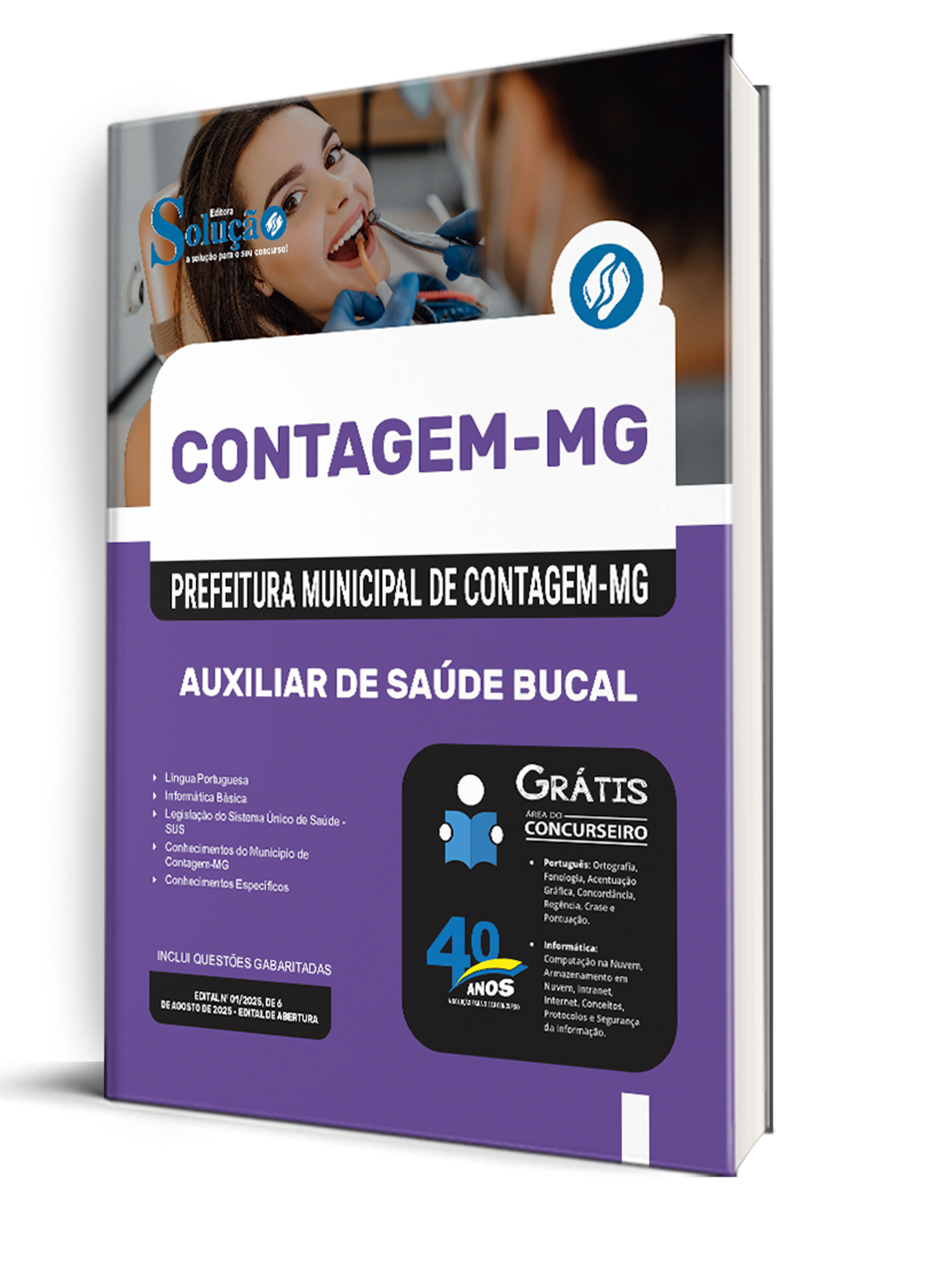 A Apostila Prefeitura Municipal de Contagem - MG 2025 - Auxiliar de Saúde Bucal foi organizada para proporcionar um melhor rendimento na sua preparação, abordando cada conteúdo de forma objetiva e direcionada. Estude para o Concurso da Prefeitura Municipal de Contagem - MG 2025 com um material de acordo com o Edital oficial para o cargo de Auxiliar de Saúde Bucal.