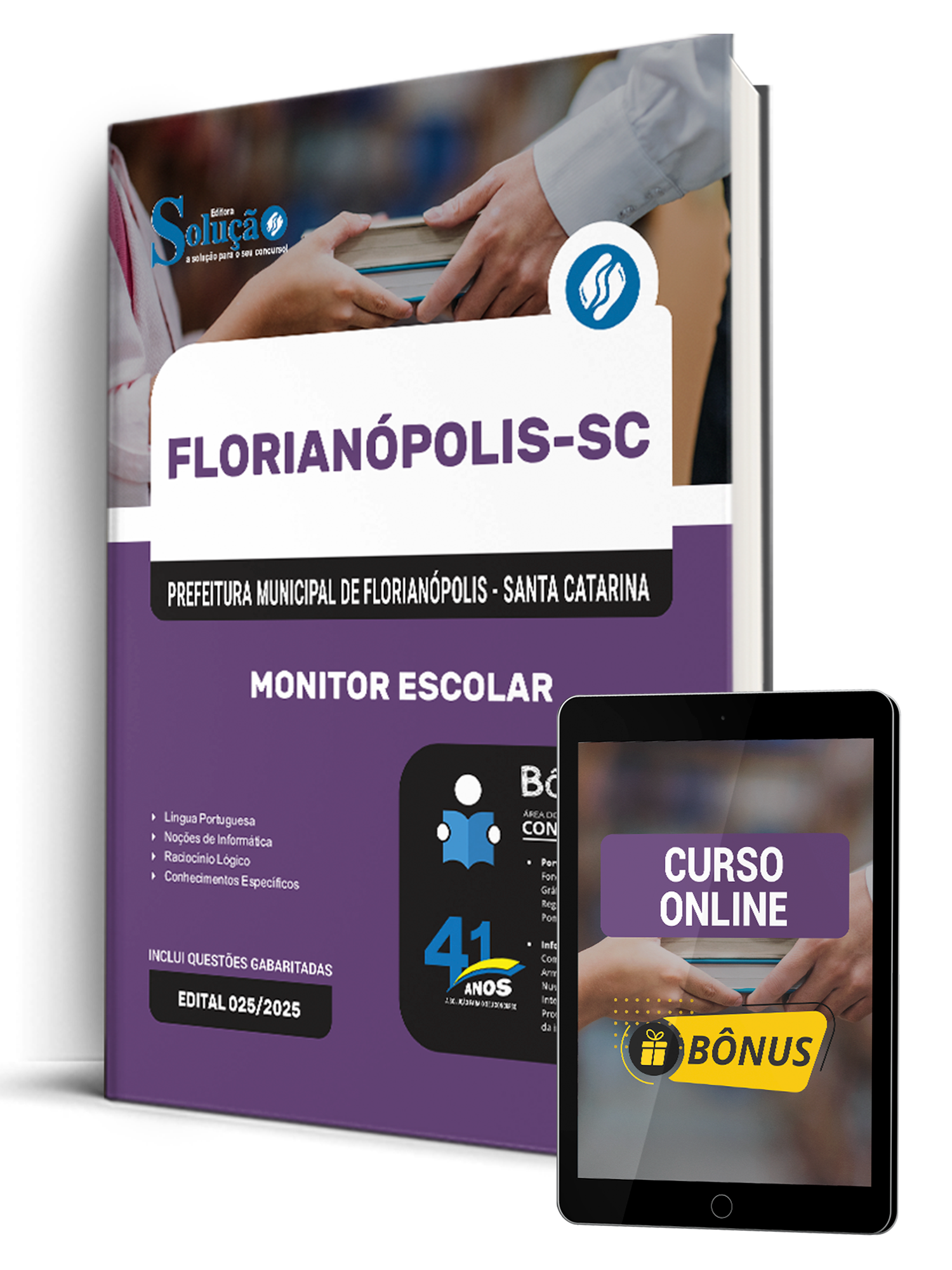A Apostila Prefeitura Municipal de Florianópolis - SC 2026 - Monitor Escolar foi organizada para proporcionar um melhor rendimento na sua preparação, abordando cada conteúdo de forma objetiva e direcionada. Estude para o Concurso da Prefeitura Municipal de Florianópolis - SC 2026 com um material de acordo com o Edital oficial para o cargo de Monitor Escolar.
