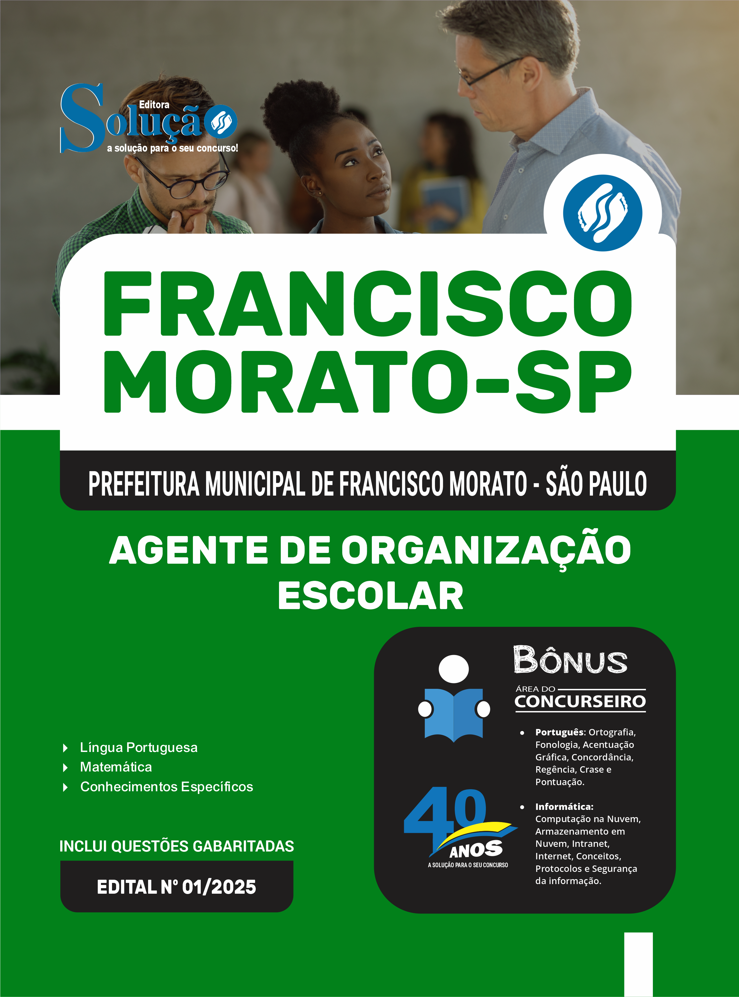 A Apostila Prefeitura Municipal de Francisco Morato - SP 2025 - Agente de Organização Escolar foi organizada para proporcionar um melhor rendimento na sua preparação, abordando cada conteúdo de forma objetiva e direcionada. Estude para o Concurso da Prefeitura Municipal de Francisco Morato - SP 2025 com um material de acordo com o Edital oficial para o cargo de Agente de Organização Escolar.