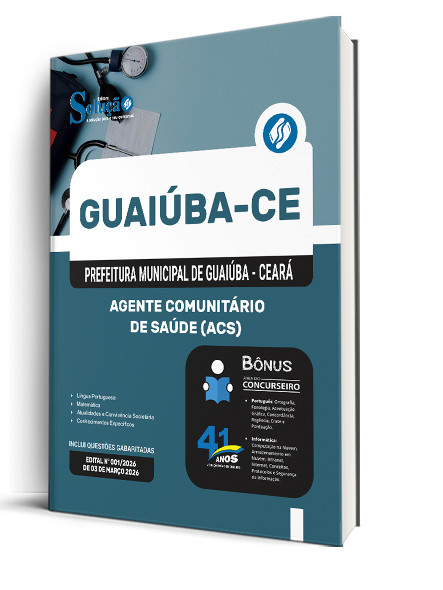 A Apostila Prefeitura Municipal de Guaiúba-CE 2026 - Agente Comunitário de Saúde foi organizada para proporcionar um melhor rendimento na sua preparação, abordando cada conteúdo de forma objetiva e direcionada. Estude para o Concurso da Prefeitura Municipal de Guaiúba-CE 2026 com um material de acordo com o Edital oficial para o cargo de Agente Comunitário de Saúde.