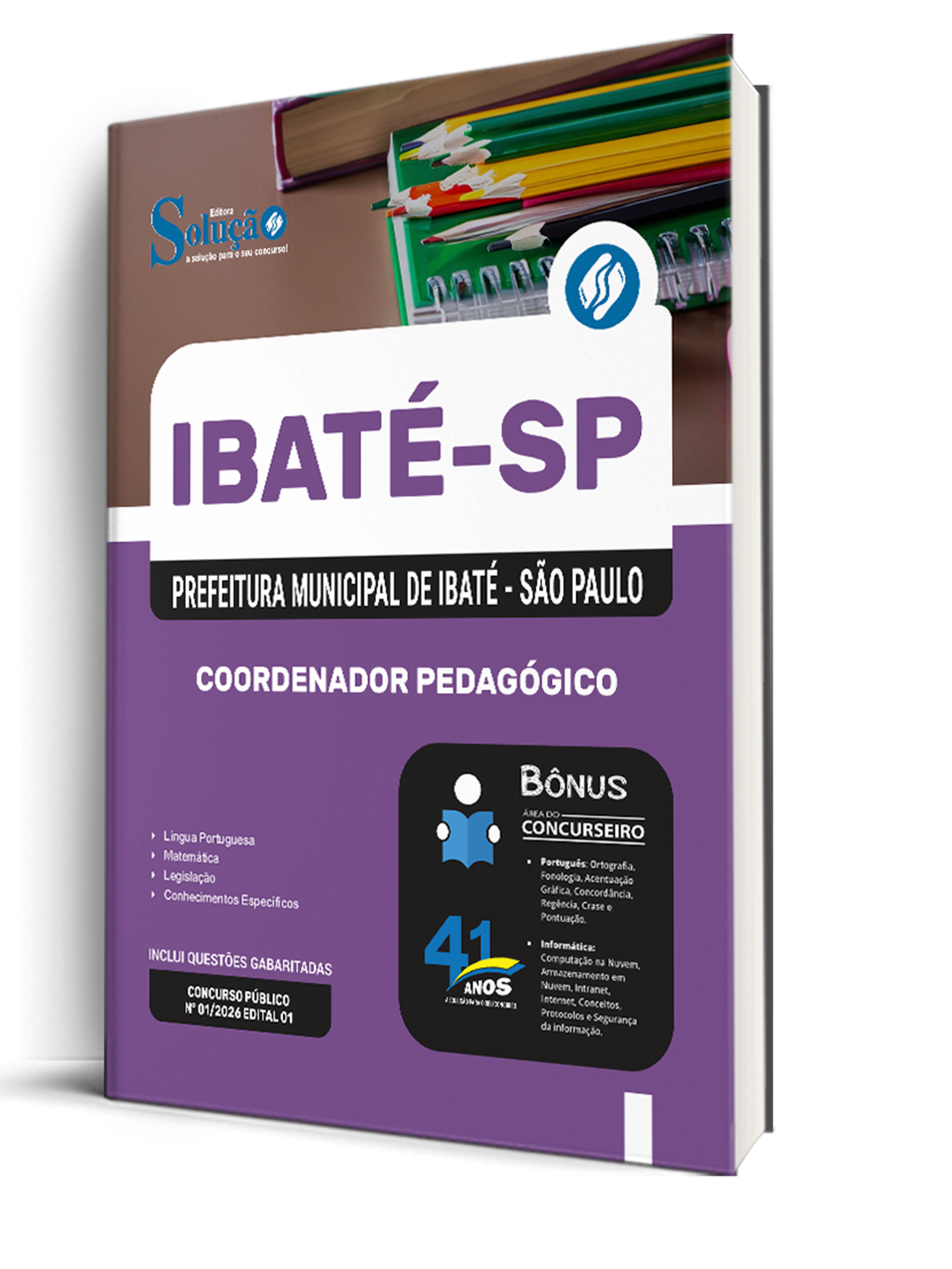 A Apostila Prefeitura Municipal de Ibaté - SP 2026 - Coordenador Pedagógico foi organizada para proporcionar um melhor rendimento na sua preparação, abordando cada conteúdo de forma objetiva e direcionada. Estude para o Concurso da Prefeitura Municipal de Ibaté - SP 2026 com um material de acordo com o Edital oficial para o cargo de Coordenador Pedagógico.