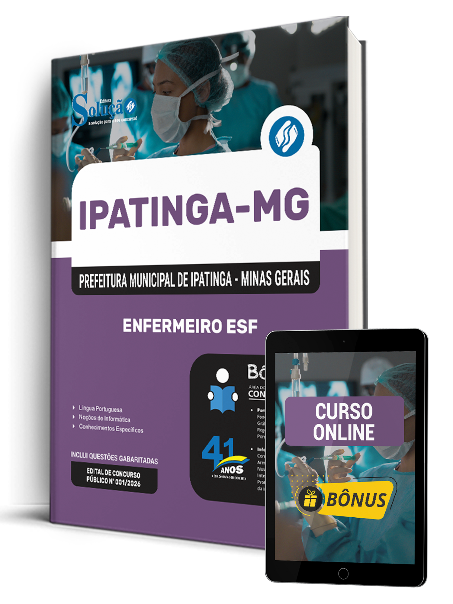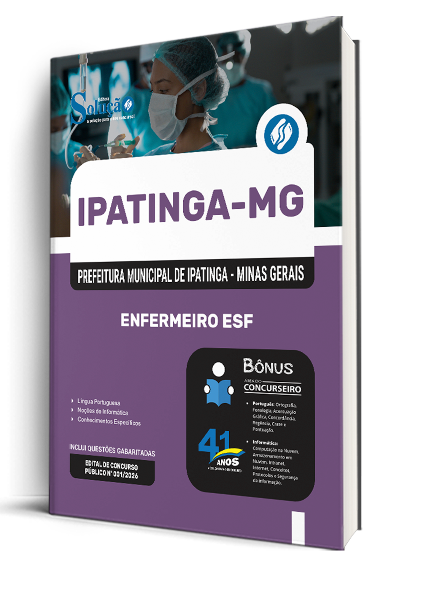 A Apostila Prefeitura Municipal de Ipatinga - MG 2026 - Enfermeiro ESF foi organizada para proporcionar um melhor rendimento na sua preparação, abordando cada conteúdo de forma objetiva e direcionada. Estude para o Concurso da Prefeitura Municipal de Ipatinga - MG 2026 com um material de acordo com o Edital oficial para o cargo de Enfermeiro ESF.