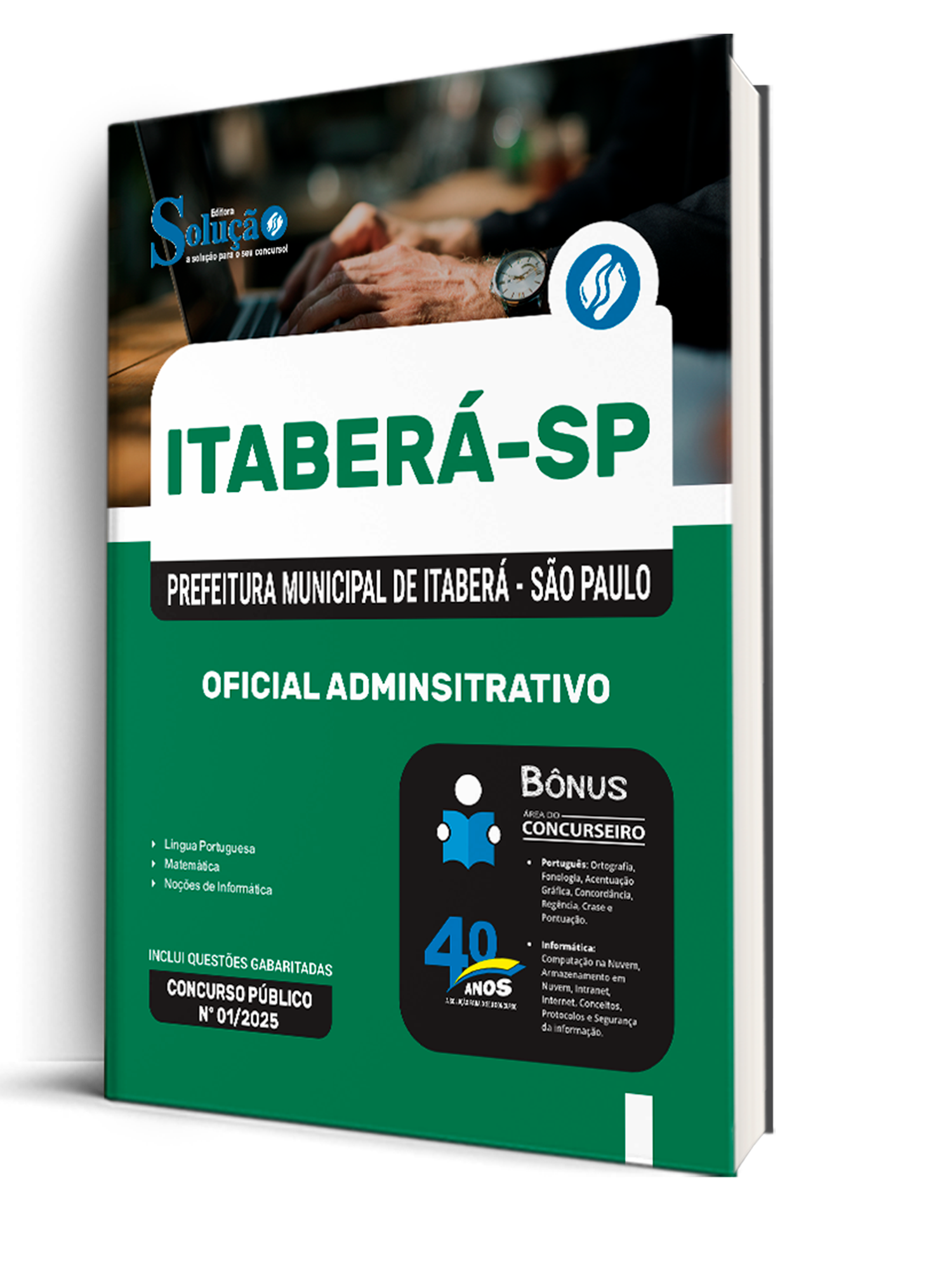 A Apostila Prefeitura Municipal de Itaberá - SP 2025 - Oficial Administrativo foi organizada para proporcionar um melhor rendimento na sua preparação, abordando cada conteúdo de forma objetiva e direcionada. Estude para o Concurso da Prefeitura Municipal de Itaberá - SP 2025 com um material de acordo com o Edital oficial para o cargo de Oficial Administrativo.