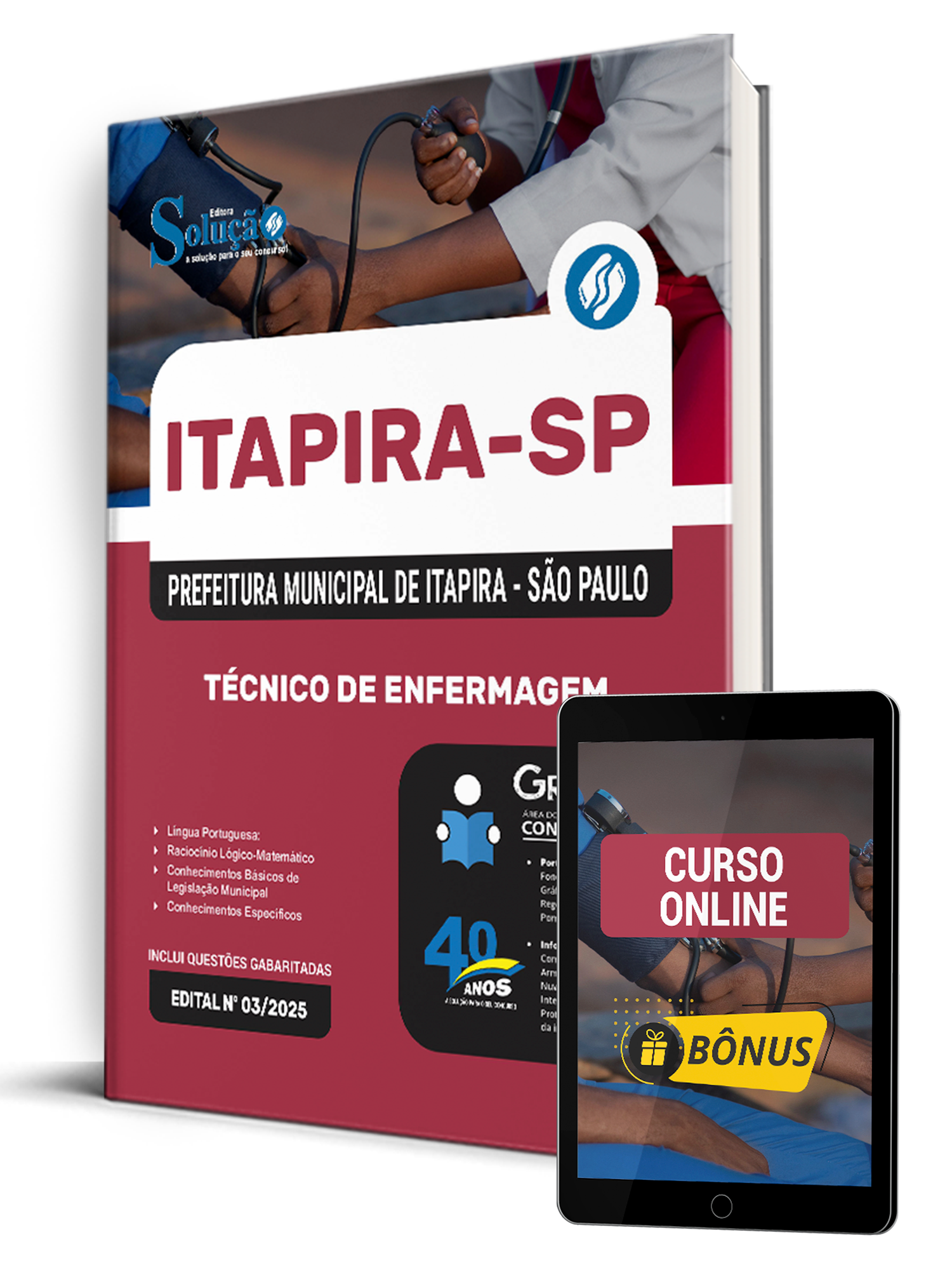 A Apostila Prefeitura Municipal de Itapira - SP 03 - 2025 - Técnico de Enfermagem foi organizada para proporcionar um melhor rendimento na sua preparação, abordando cada conteúdo de forma objetiva e direcionada. Estude para o Concurso da Prefeitura Municipal de Itapira - SP 03 - 2025 com um material de acordo com o Edital oficial para o cargo de Técnico de Enfermagem.