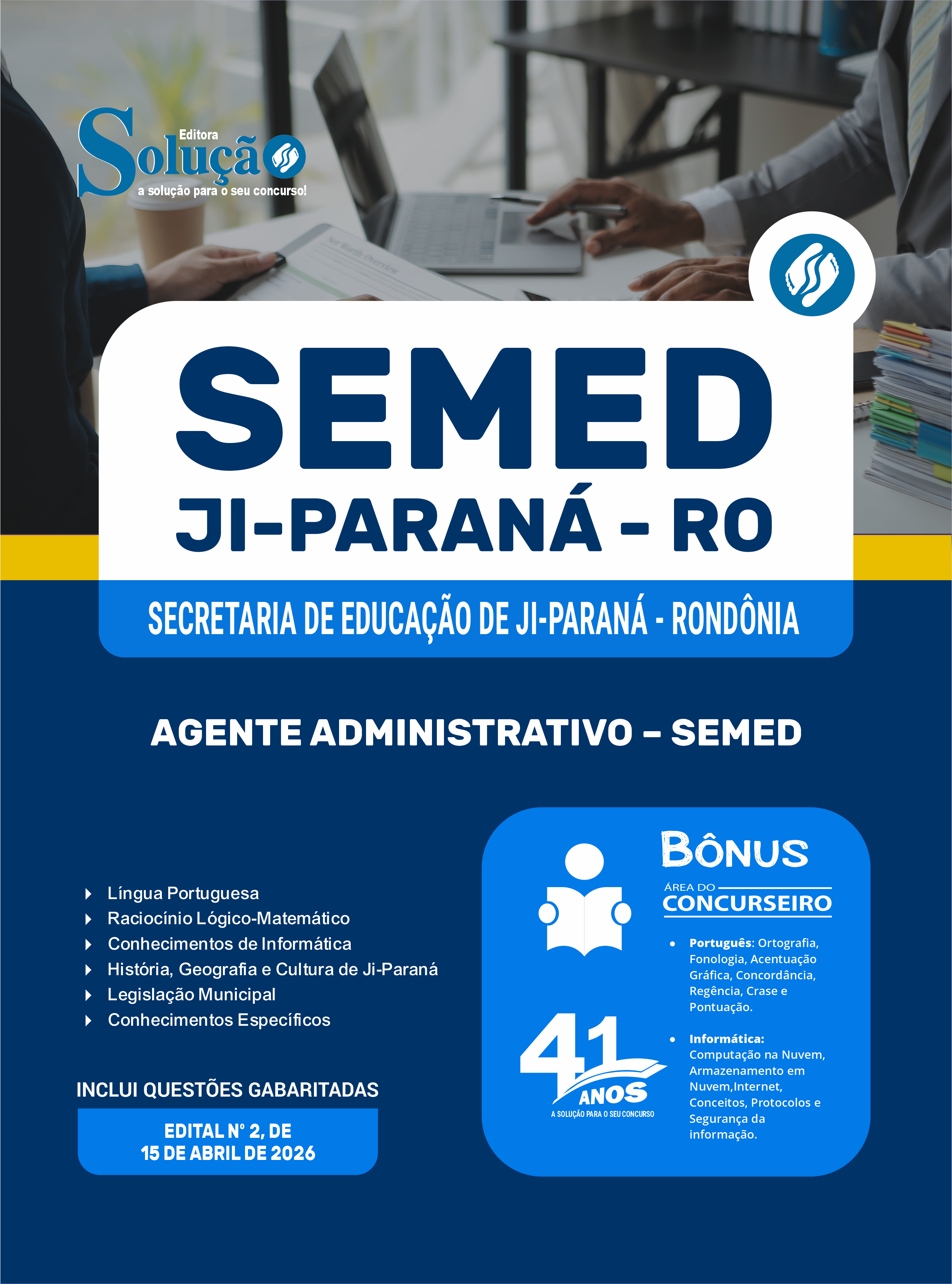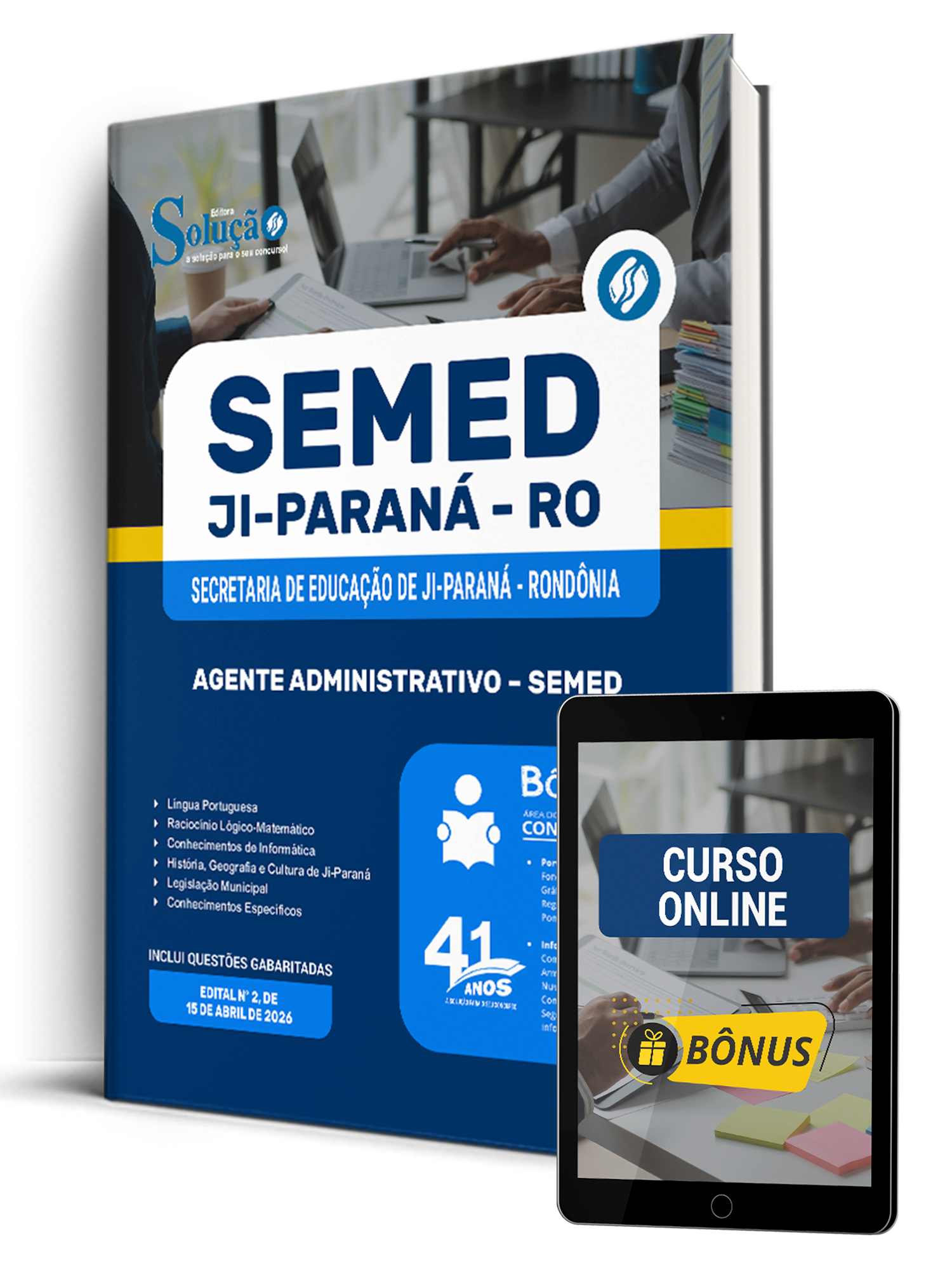 A Apostila Prefeitura Municipal de Ji-Paraná - RO 2026 - Agente Administrativo - SEMED foi organizada para proporcionar um melhor rendimento na sua preparação, abordando cada conteúdo de forma objetiva e direcionada. Estude para o Concurso da Prefeitura Municipal de Ji-Paraná - RO 2026 com um material de acordo com o Edital oficial para o cargo de Agente Administrativo - SEMED.