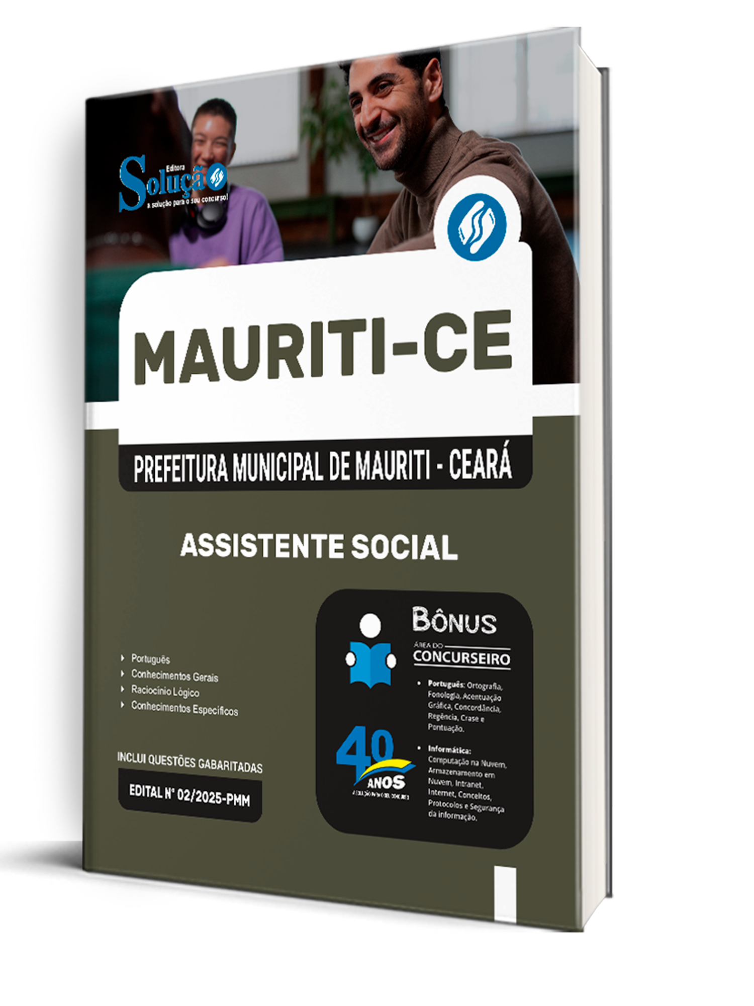 A Apostila Prefeitura Municipal de Mauriti-CE 2025 - Assistente Social foi organizada para proporcionar um melhor rendimento na sua preparação, abordando cada conteúdo de forma objetiva e direcionada. Estude para o Concurso da Prefeitura Municipal de Mauriti-CE 2025 com um material de acordo com o Edital oficial para o cargo de Assistente Social.