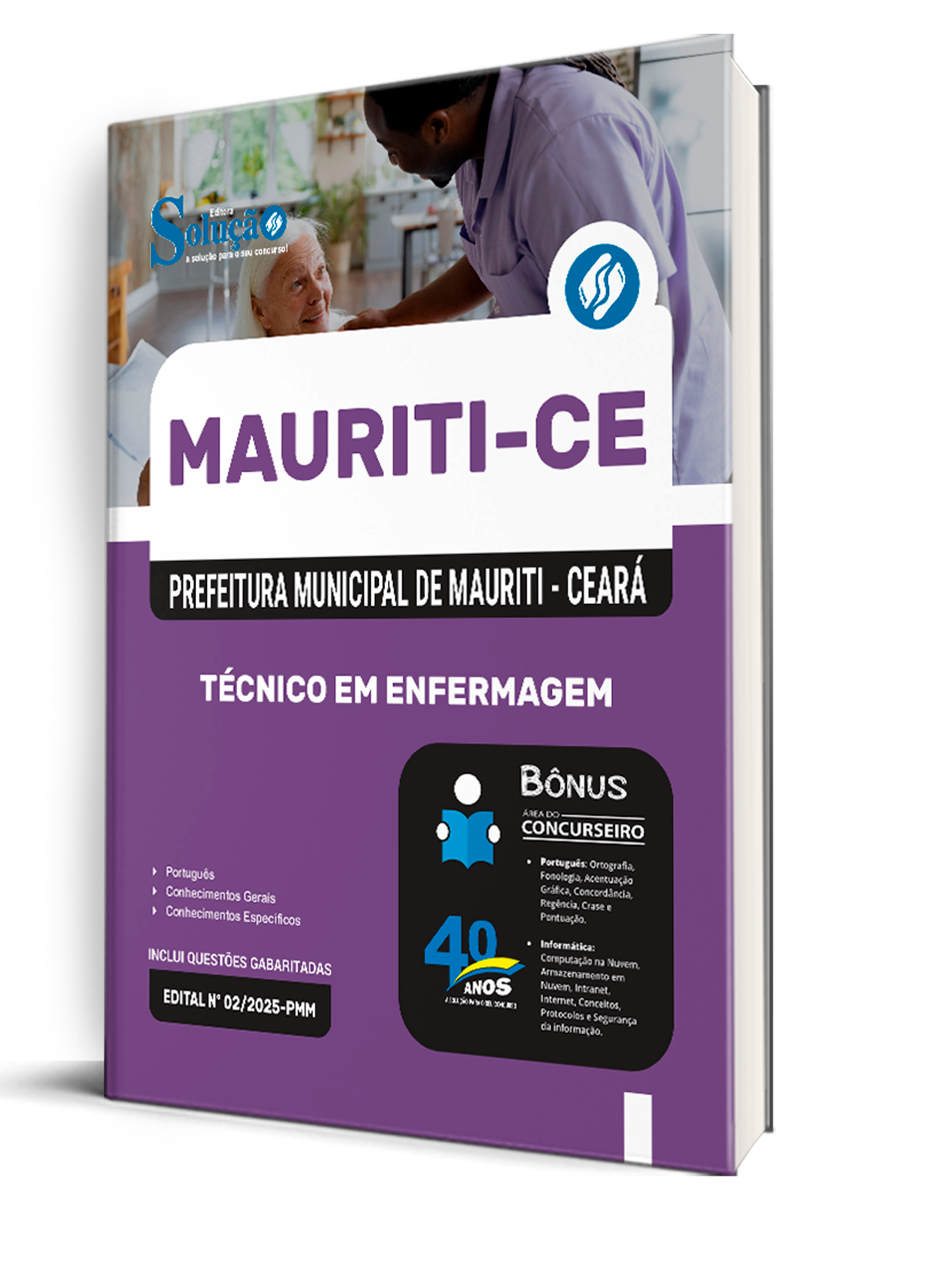 A Apostila Prefeitura Municipal de Mauriti-CE 2025 - Técnico em Enfermagem foi organizada para proporcionar um melhor rendimento na sua preparação, abordando cada conteúdo de forma objetiva e direcionada. Estude para o Concurso da Prefeitura Municipal de Mauriti-CE 2025 com um material de acordo com o Edital oficial para o cargo de Técnico em Enfermagem.