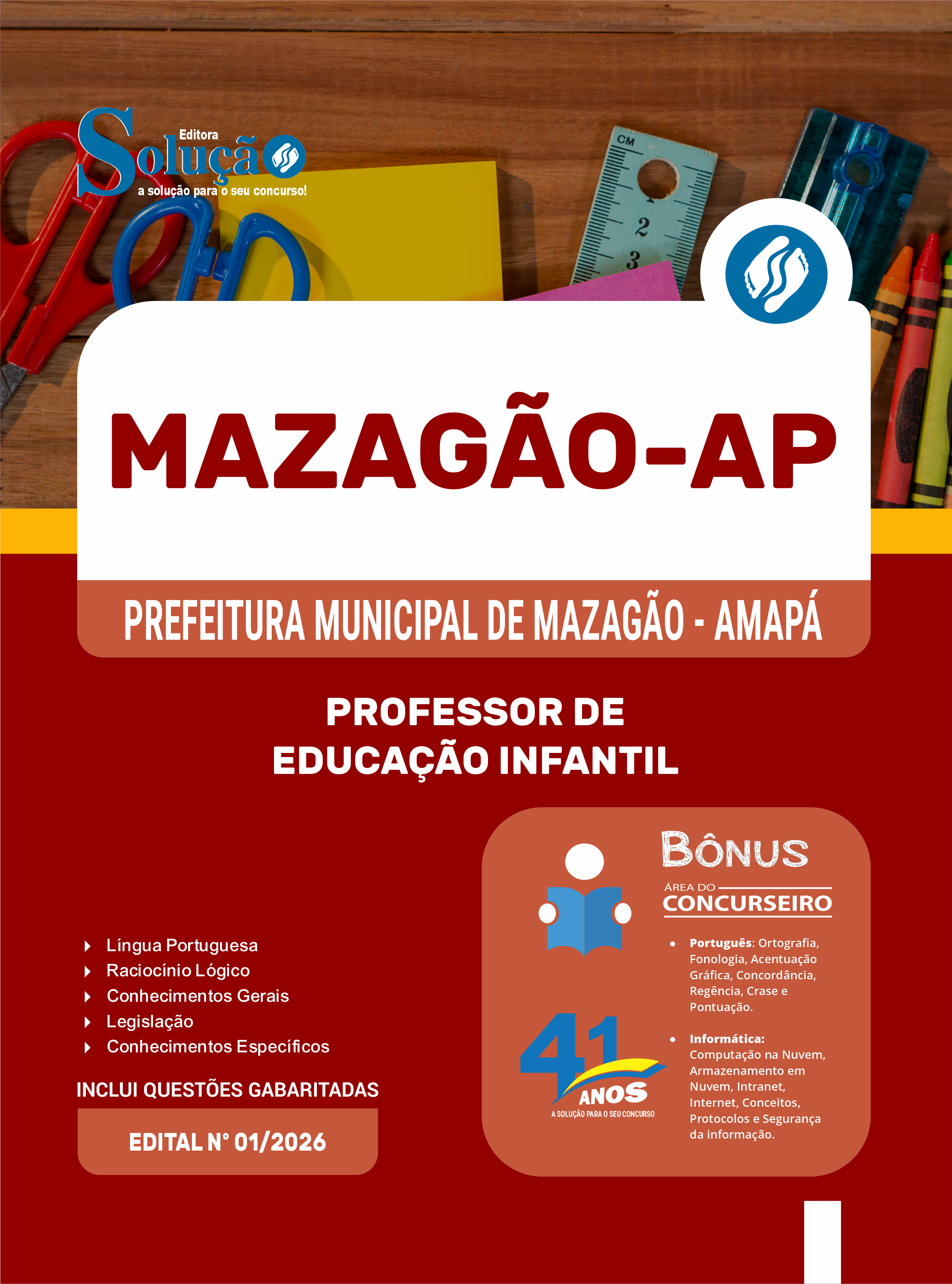 A Apostila Prefeitura Municipal de Mazagão-AP 2026 - Professor de Educação Infantil foi organizada para proporcionar um melhor rendimento na sua preparação, abordando cada conteúdo de forma objetiva e direcionada. Estude para o Concurso da Prefeitura Municipal de Mazagão-AP 2026 com um material de acordo com o Edital oficial para o cargo de Professor de Educação Infantil.