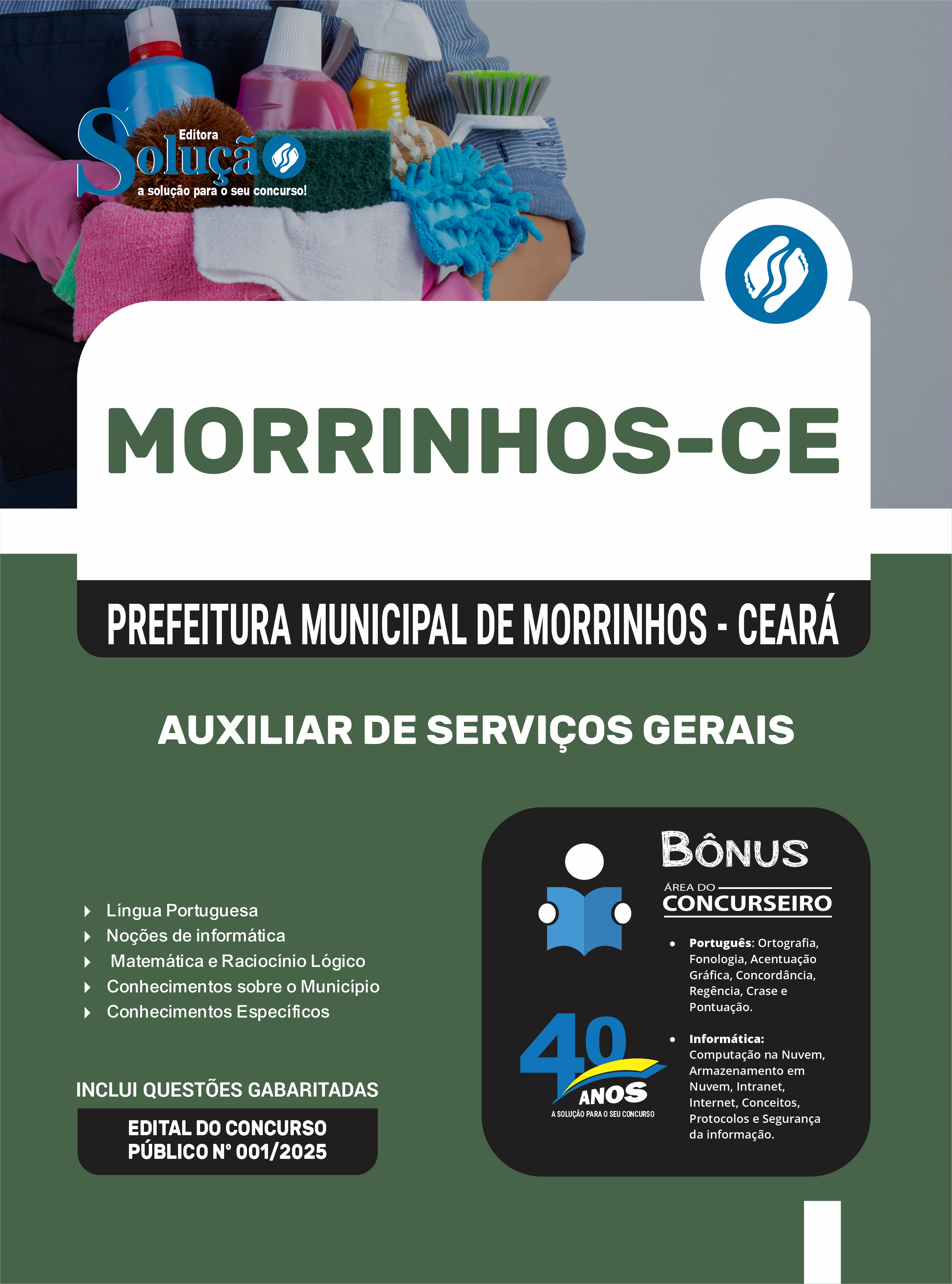 Apostila Prefeitura de Morrinhos-CE 2025 - Auxiliar de Serviços Gerais