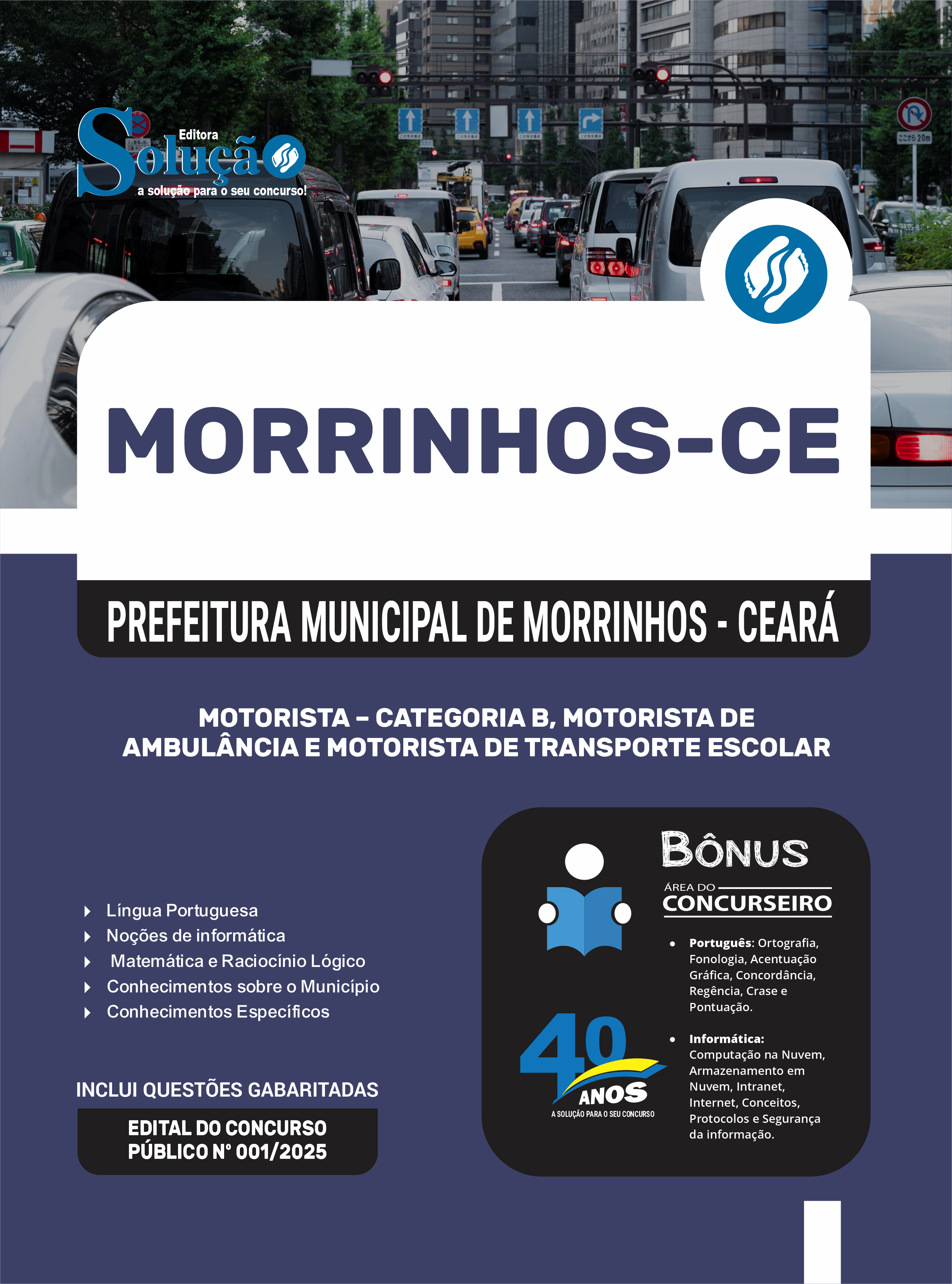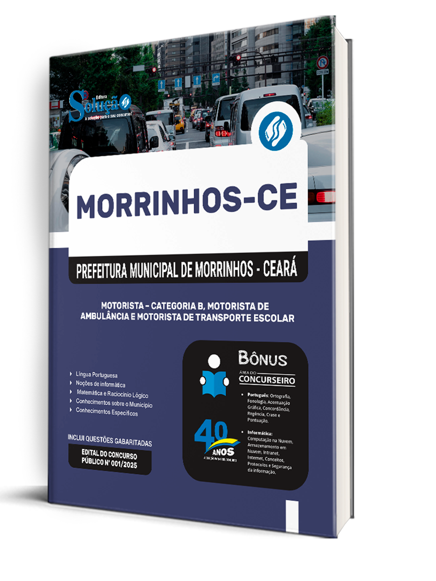Apostila Prefeitura de Morrinhos-CE 2025 - Motorista – Categoria B, Motorista De Ambulância e Motorista De Transporte Escolar