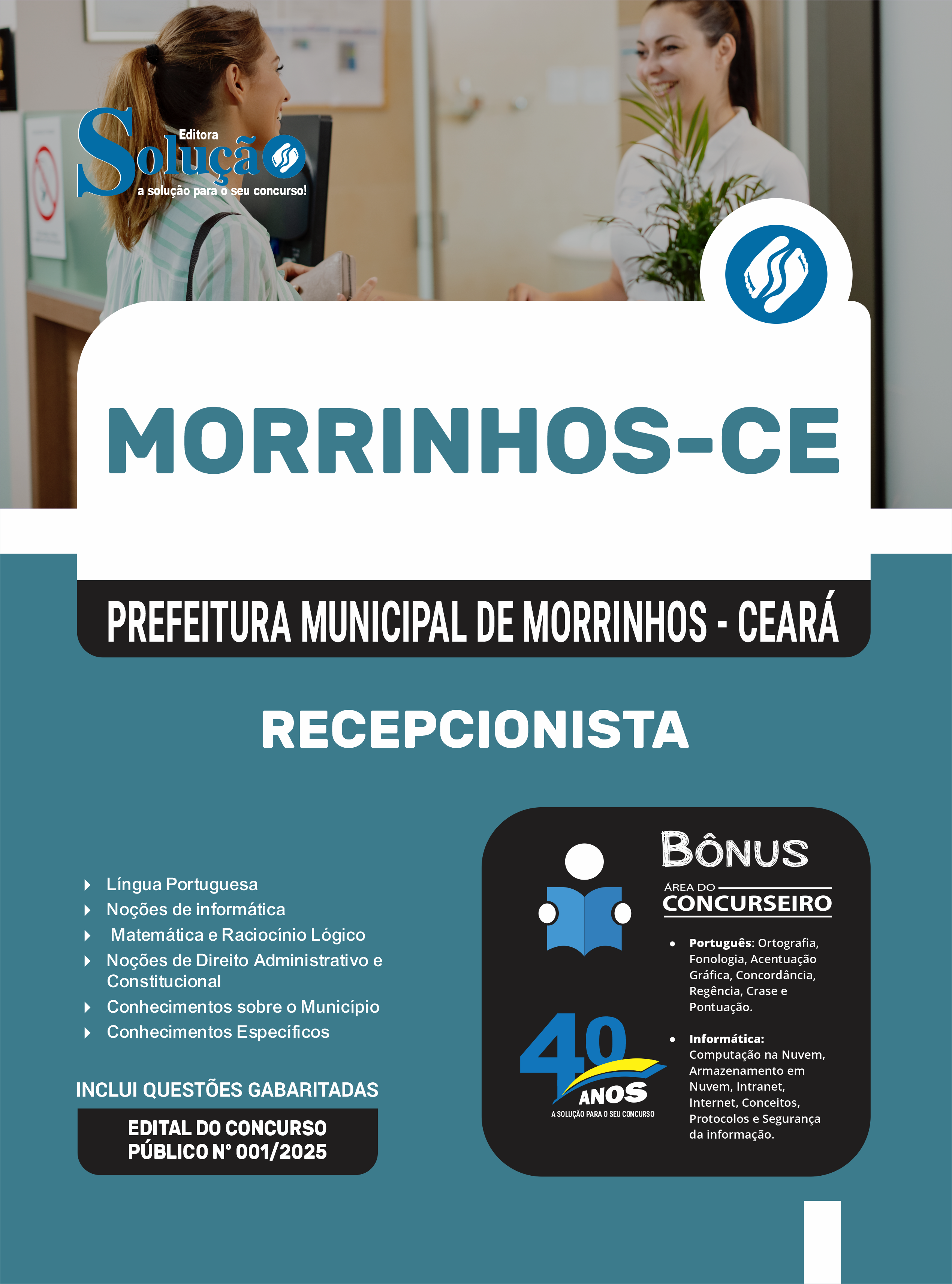 Apostila Prefeitura de Morrinhos-CE 2025 - Recepcionista