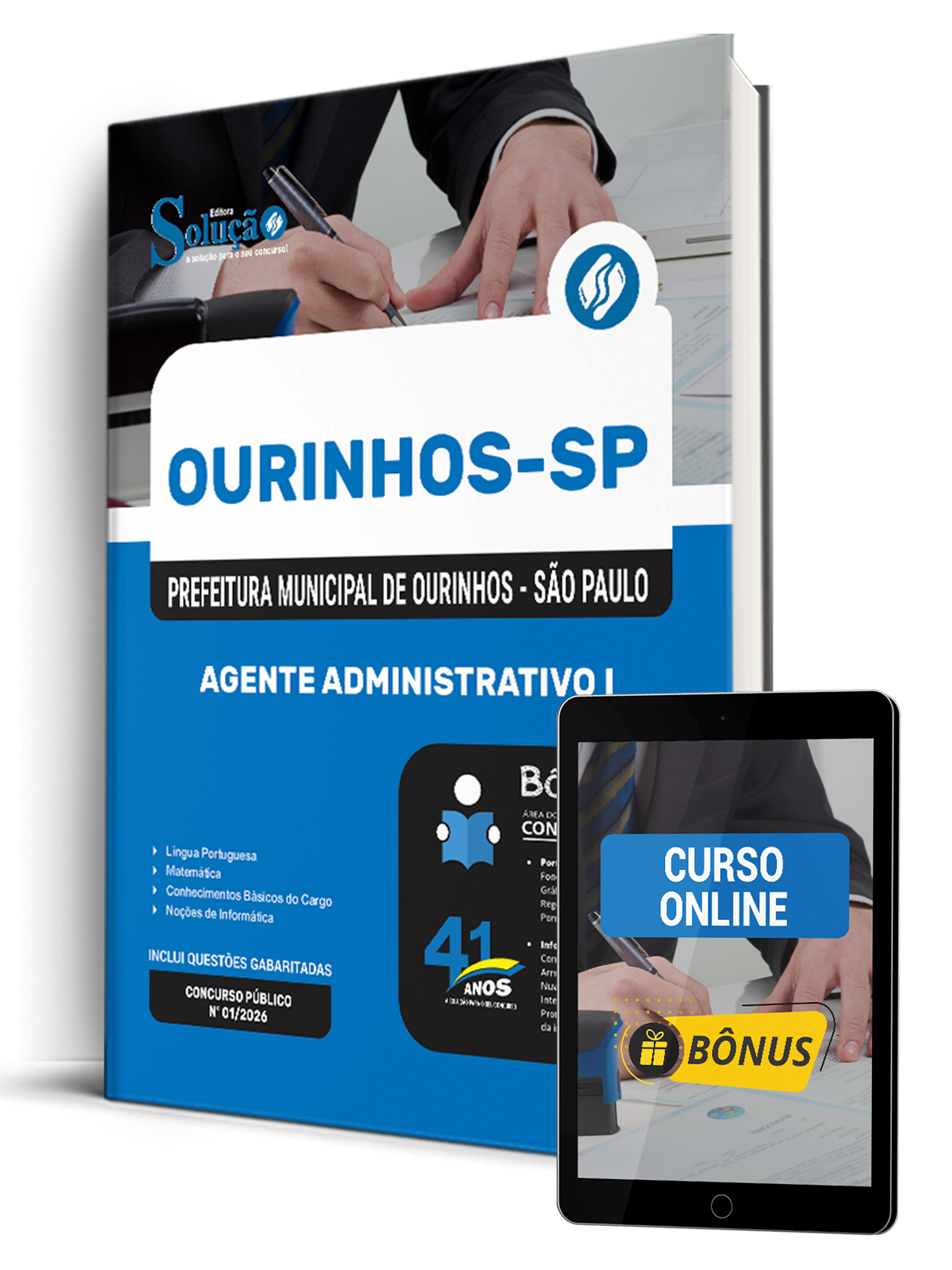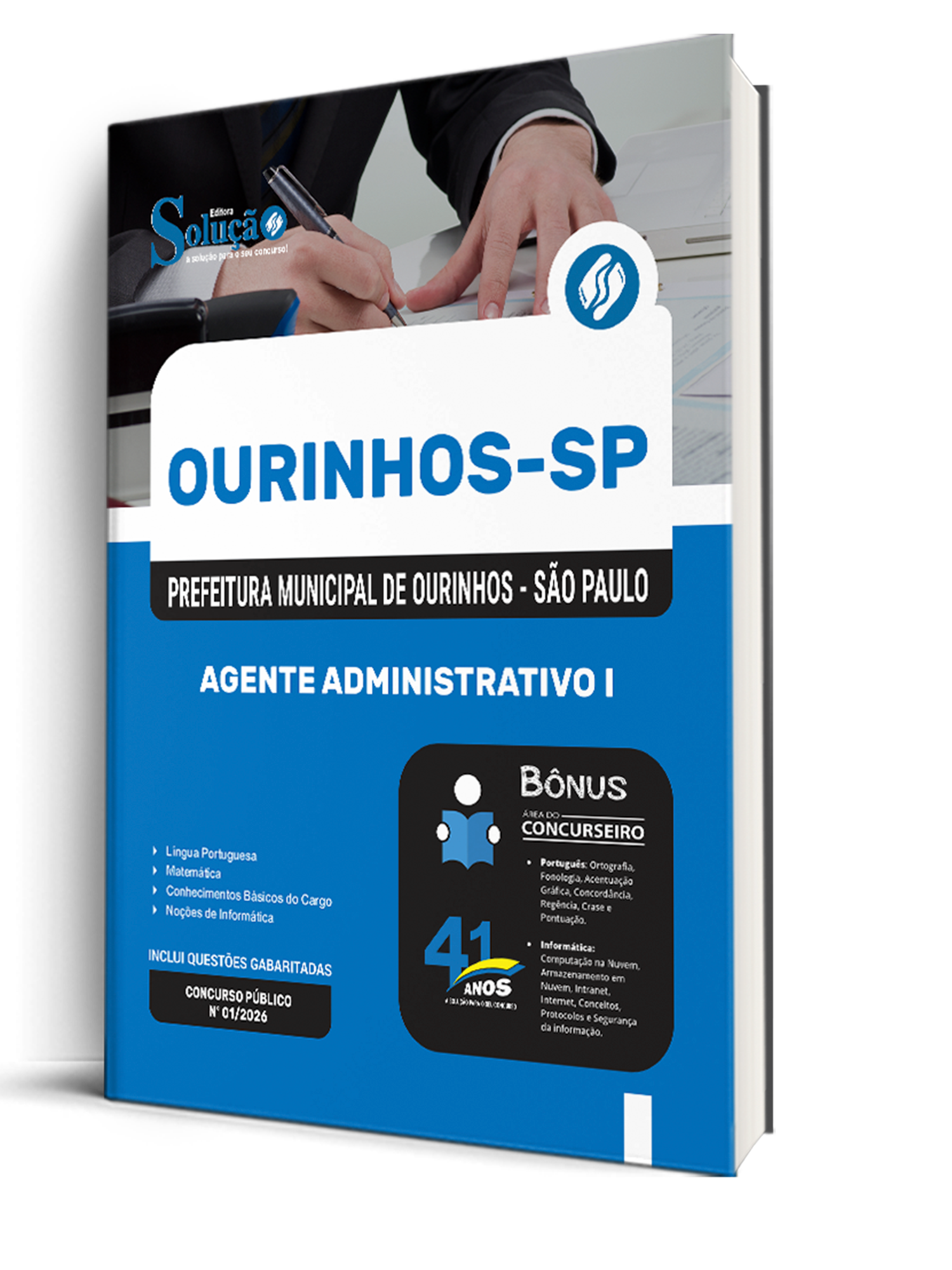 A Apostila Prefeitura Municipal de Ourinhos - SP 2026 - Agente Administrativo I foi organizada para proporcionar um melhor rendimento na sua preparação, abordando cada conteúdo de forma objetiva e direcionada. Estude para o Concurso da Prefeitura Municipal de Ourinhos - SP 2026 com um material de acordo com o Edital oficial para o cargo de Agente Administrativo I.