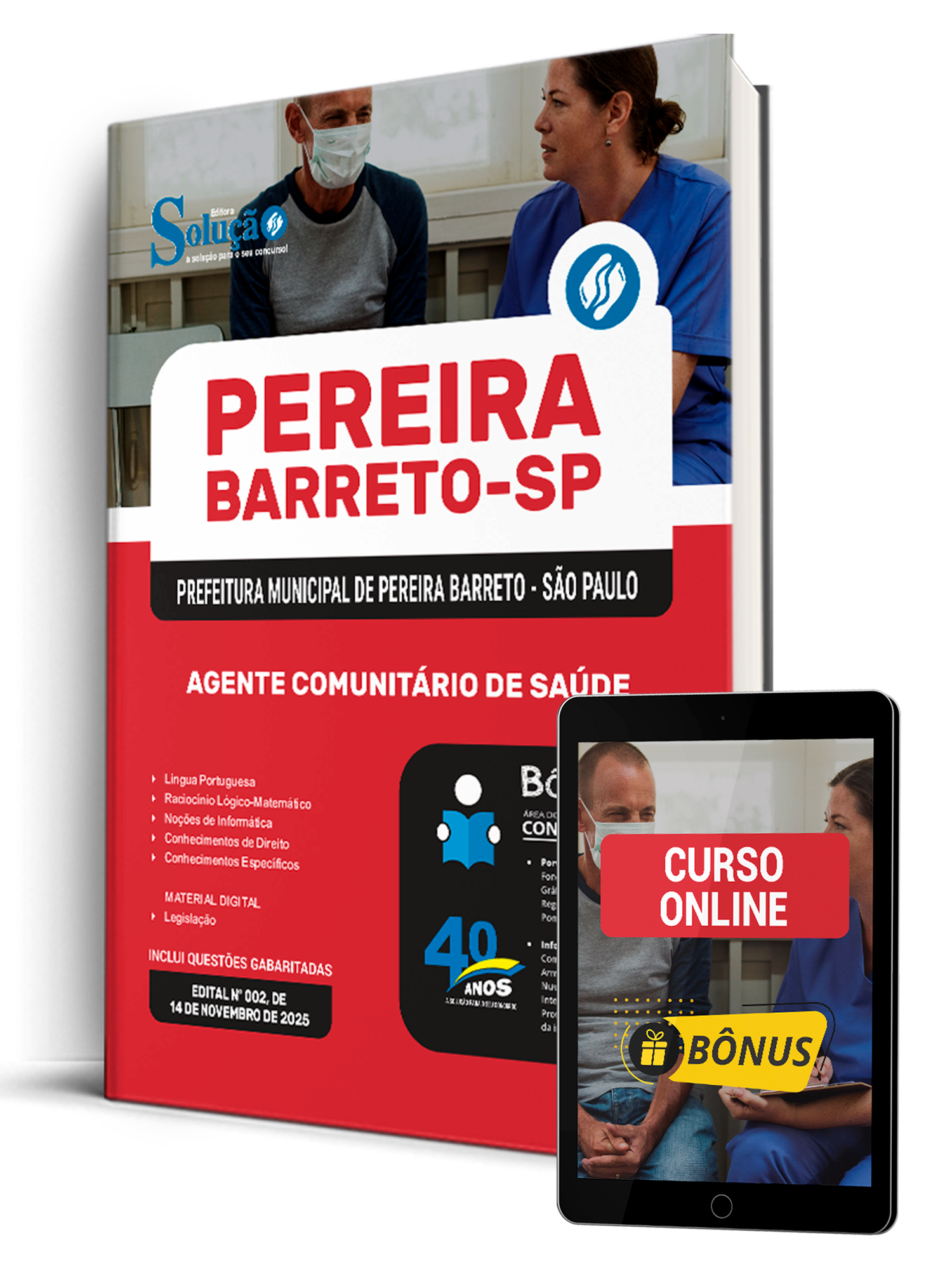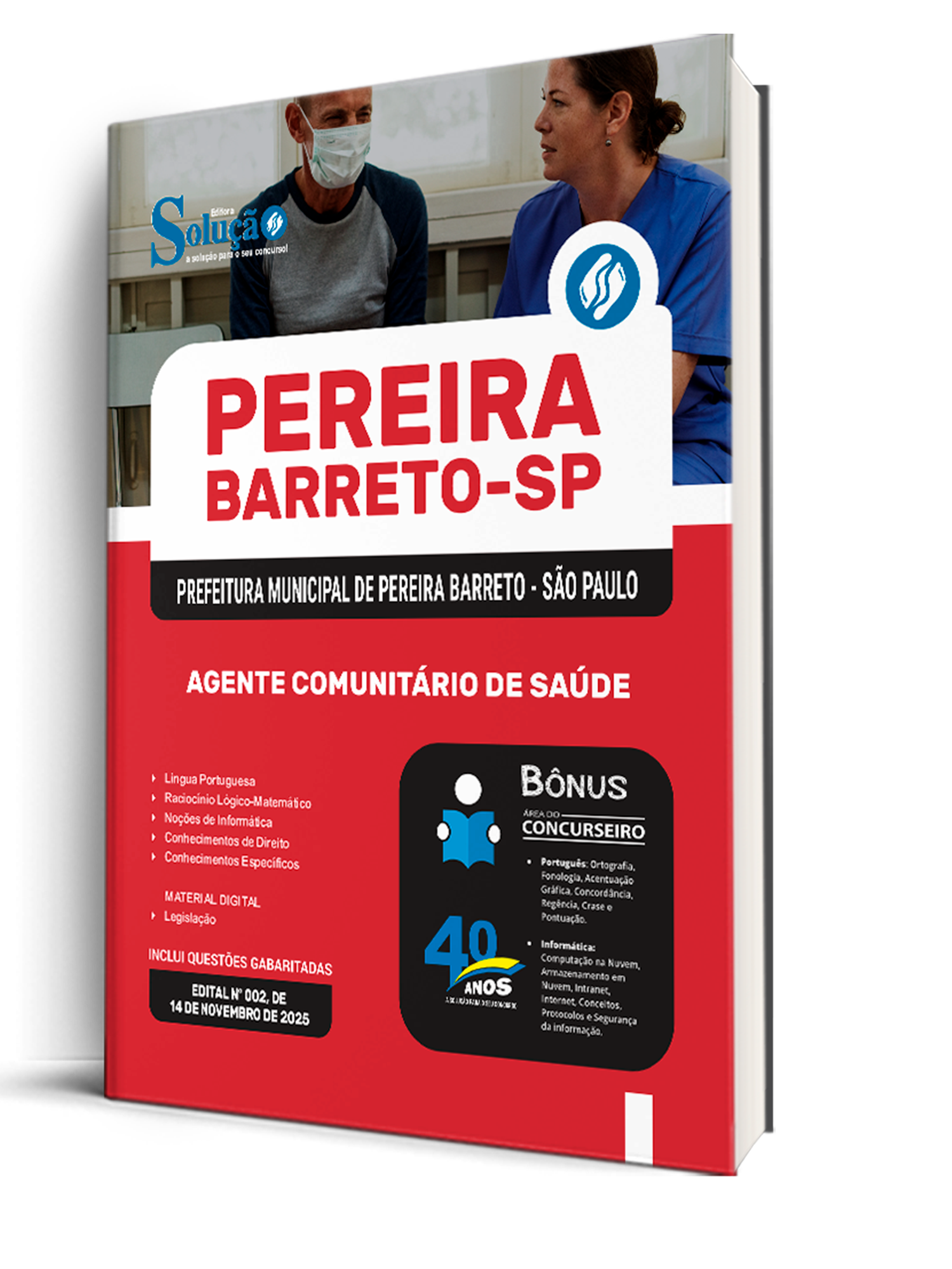 A Apostila Prefeitura Municipal de Pereira Barreto - SP 2025 - Agente Comunitário de Saúde foi organizada para proporcionar um melhor rendimento na sua preparação, abordando cada conteúdo de forma objetiva e direcionada. Estude para o Concurso da Prefeitura Municipal de Pereira Barreto - SP 2025 com um material de acordo com o Edital oficial para o cargo de Agente Comunitário de Saúde.