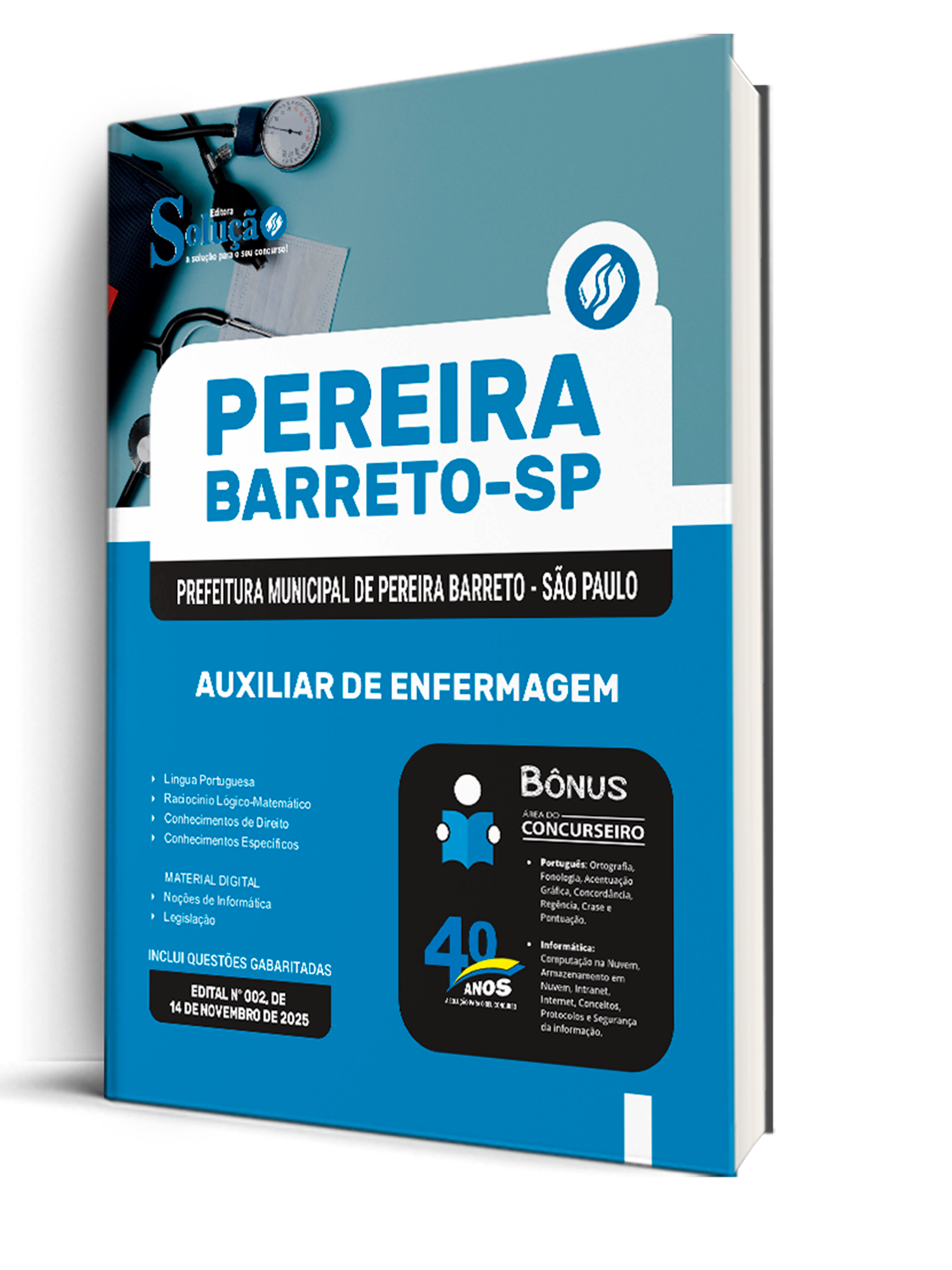 A Apostila Prefeitura Municipal de Pereira Barreto - SP 002 - 2025 - Auxiliar de Enfermagem foi organizada para proporcionar um melhor rendimento na sua preparação, abordando cada conteúdo de forma objetiva e direcionada. Estude para o Concurso da Prefeitura Municipal de Pereira Barreto - SP 002 - 2025 com um material de acordo com o Edital oficial para o cargo de Auxiliar de Enfermagem.