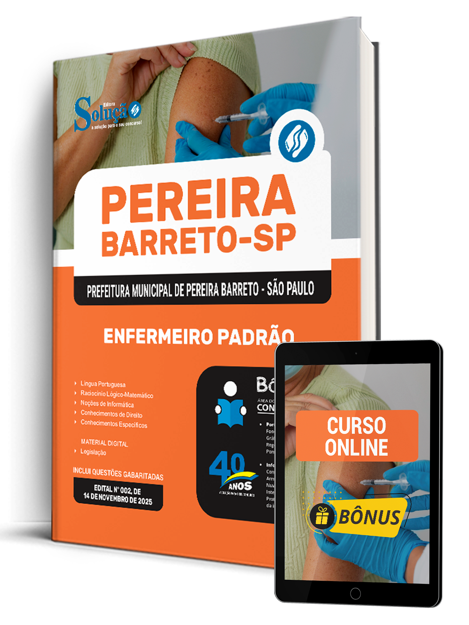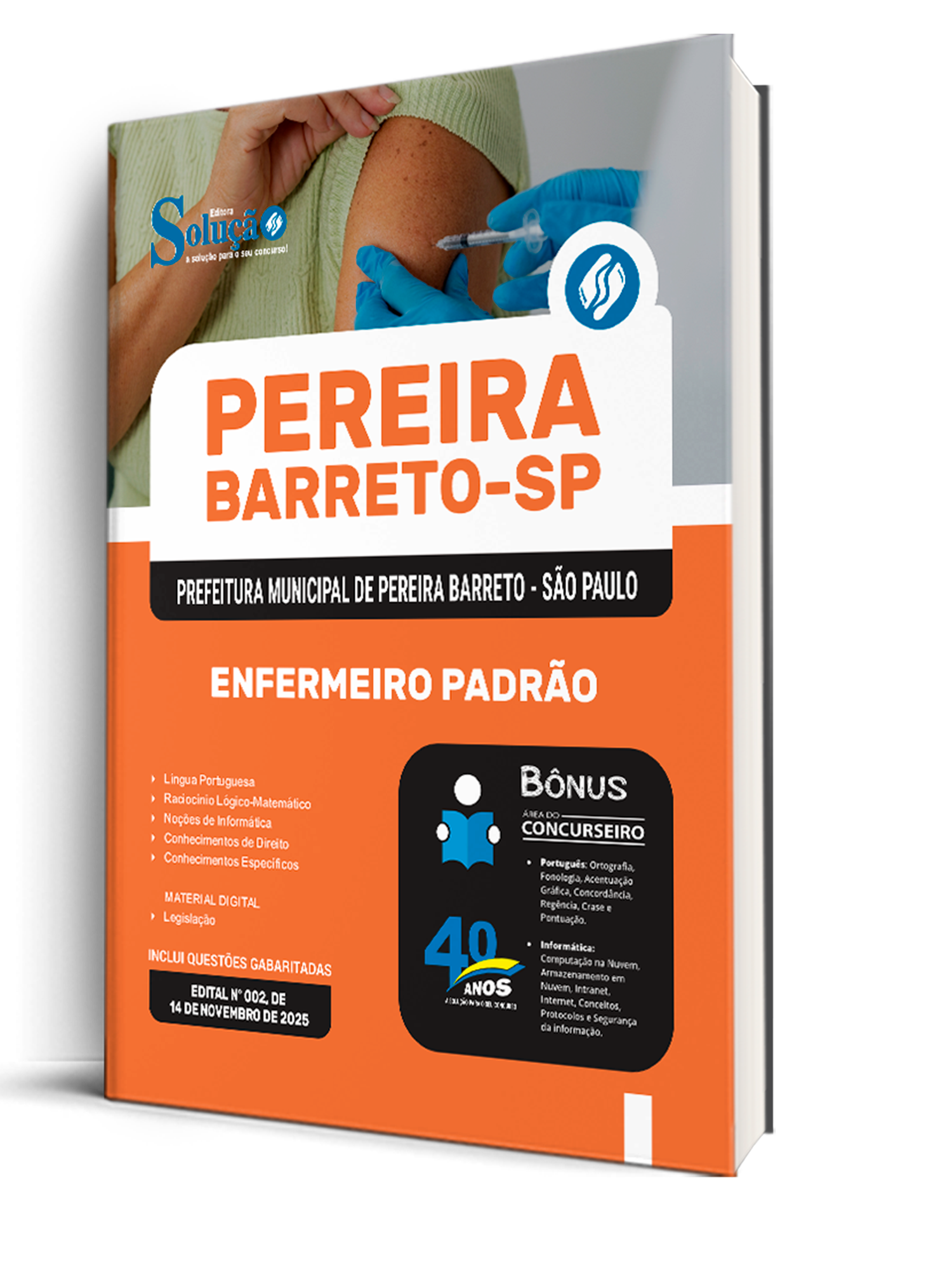A Apostila Prefeitura Municipal de Pereira Barreto - SP 2025 - Enfermeiro Padrão foi organizada para proporcionar um melhor rendimento na sua preparação, abordando cada conteúdo de forma objetiva e direcionada. Estude para o Concurso da Prefeitura Municipal de Pereira Barreto - SP 2025 com um material de acordo com o Edital oficial para o cargo de Enfermeiro Padrão.