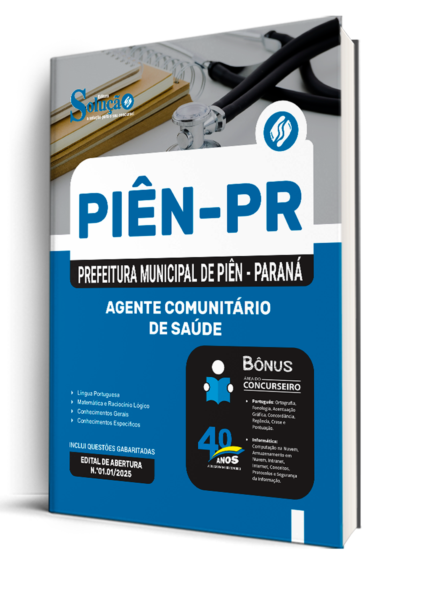 A Apostila Prefeitura Municipal de Piên-PR 2025 - Agente Comunitário de Saúde foi organizada para proporcionar um melhor rendimento na sua preparação, abordando cada conteúdo de forma objetiva e direcionada. Estude para o Concurso da Prefeitura Municipal de Piên-PR 2025 com um material de acordo com o Edital oficial para o cargo de Agente Comunitário de Saúde.