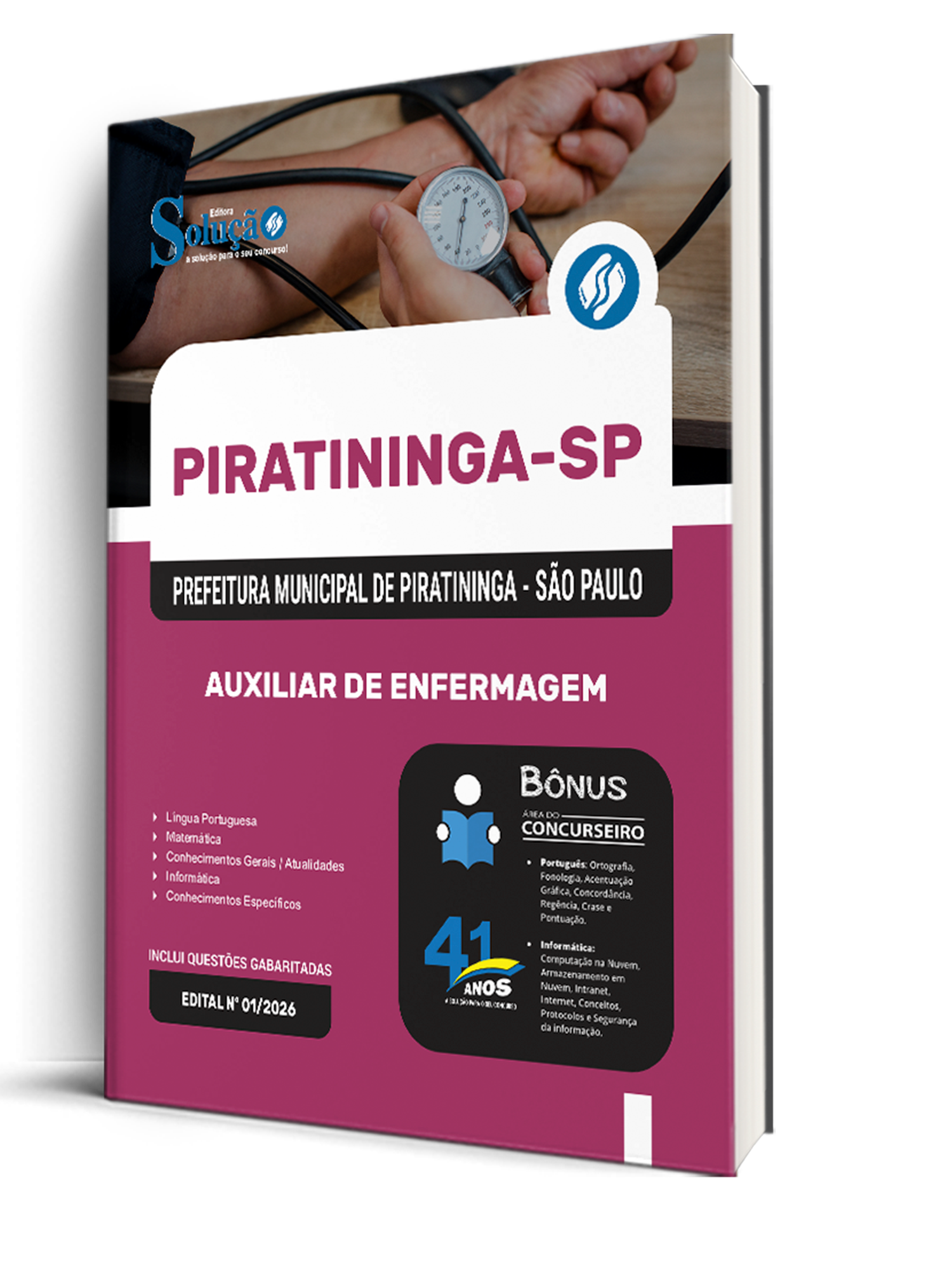 Apostila Prefeitura de Piratininga - SP 2026 - Auxiliar de Enfermagem
