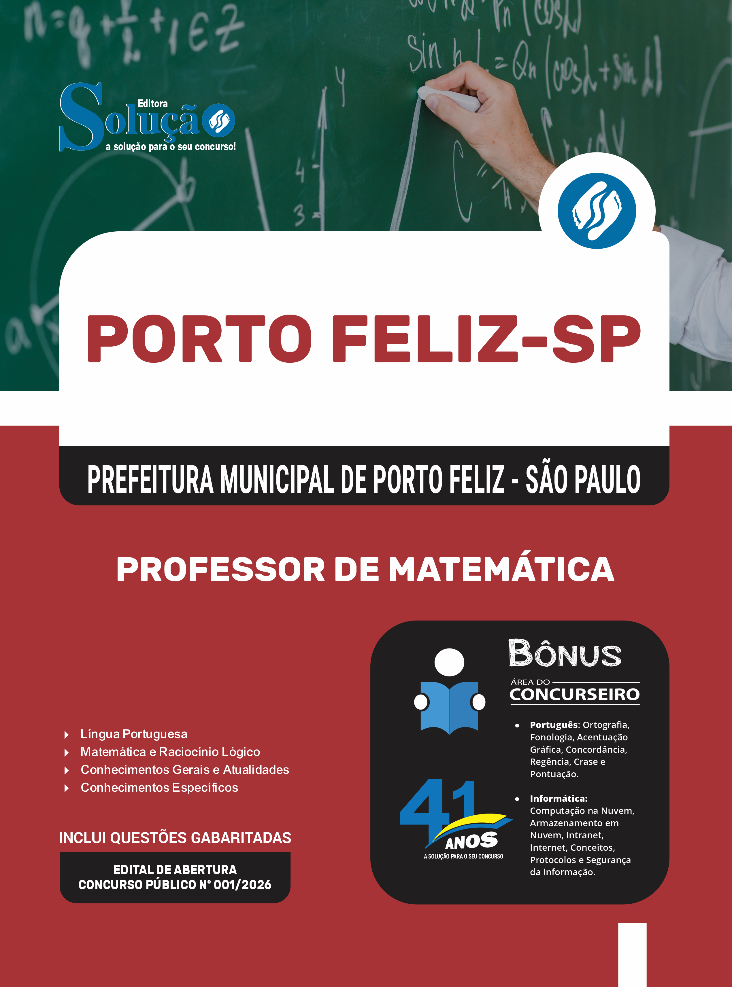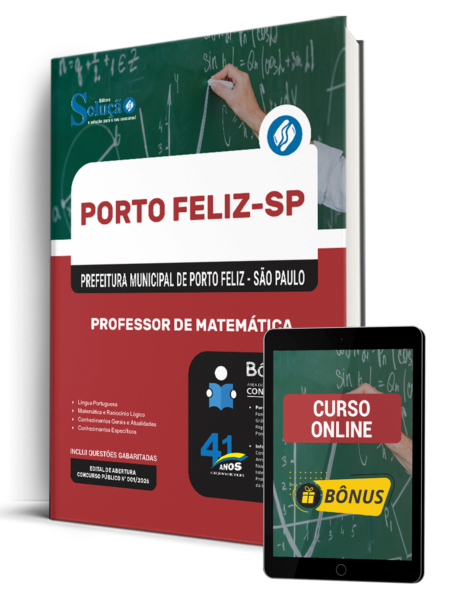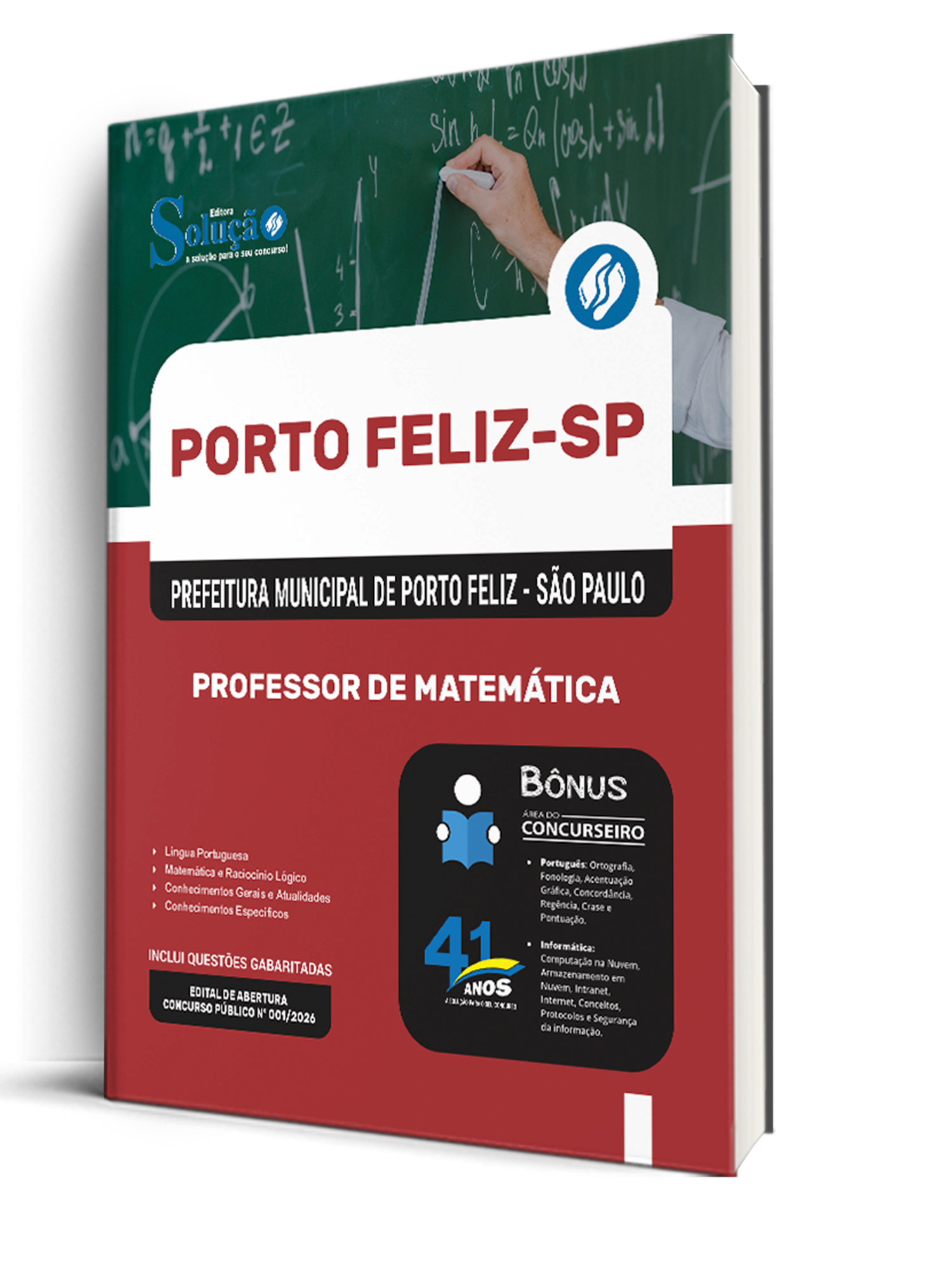 A Apostila Prefeitura Municipal de Porto Feliz - SP 2026 - Professor de Matemática foi organizada para proporcionar um melhor rendimento na sua preparação, abordando cada conteúdo de forma objetiva e direcionada. Estude para o Concurso da Prefeitura Municipal de Porto Feliz - SP 2026 com um material de acordo com o Edital oficial para o cargo de Professor de Matemática.
