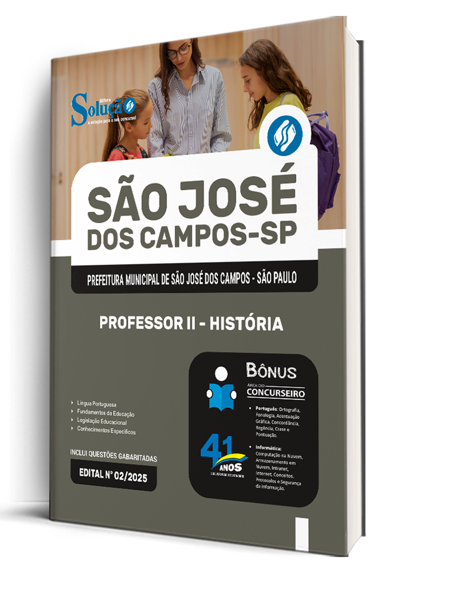 A Apostila Prefeitura Municipal de São José dos Campos - SP 2026 - Professor II - História foi organizada para proporcionar um melhor rendimento na sua preparação, abordando cada conteúdo de forma objetiva e direcionada. Estude para o Concurso da Prefeitura Municipal de São José dos Campos - SP 2026 com um material de acordo com o Edital oficial para o cargo de Professor II - História.