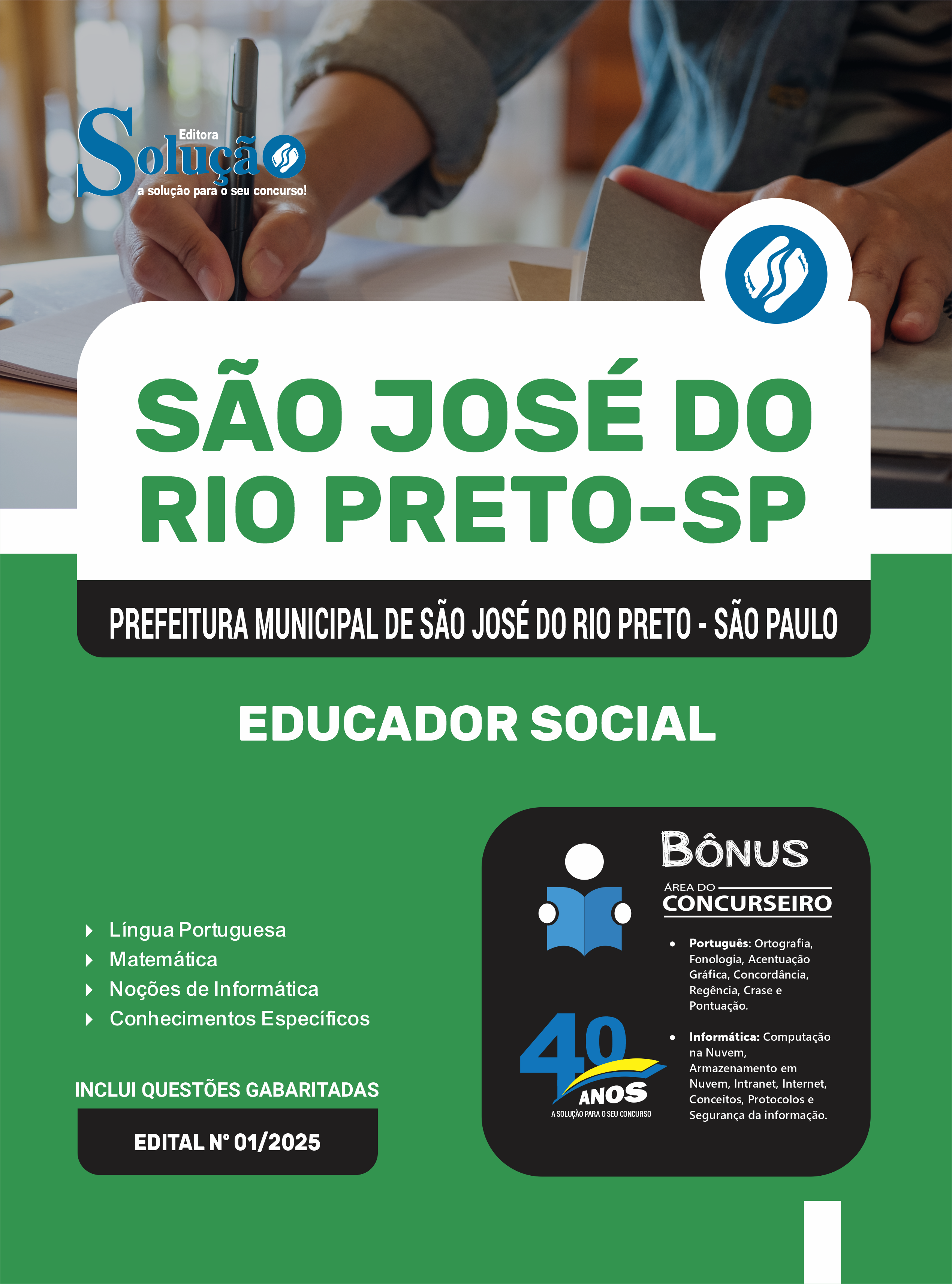 A Apostila Prefeitura Municipal de São José do Rio Preto - SP 2025 - Educador Social foi organizada para proporcionar um melhor rendimento na sua preparação, abordando cada conteúdo de forma objetiva e direcionada. Estude para o Concurso da Prefeitura Municipal de São José do Rio Preto - SP 2025 com um material de acordo com o Edital oficial para o cargo de Educador Social.