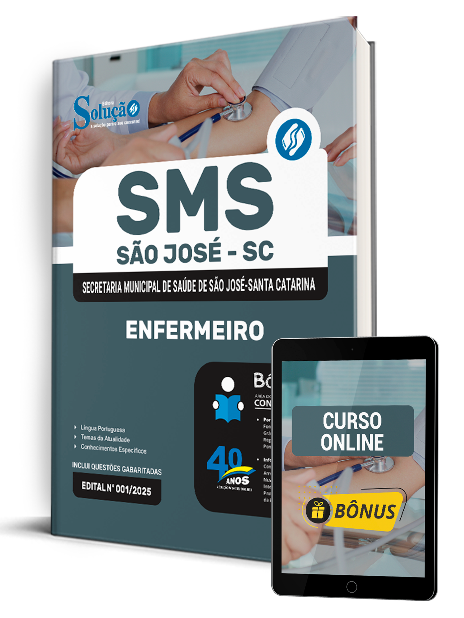 A Apostila Prefeitura Municipal de São José - SC 2025 - Enfermeiro foi organizada para proporcionar um melhor rendimento na sua preparação, abordando cada conteúdo de forma objetiva e direcionada. Estude para o Concurso da Prefeitura Municipal de São José - SC 2025 com um material de acordo com o Edital oficial para o cargo de Enfermeiro.
