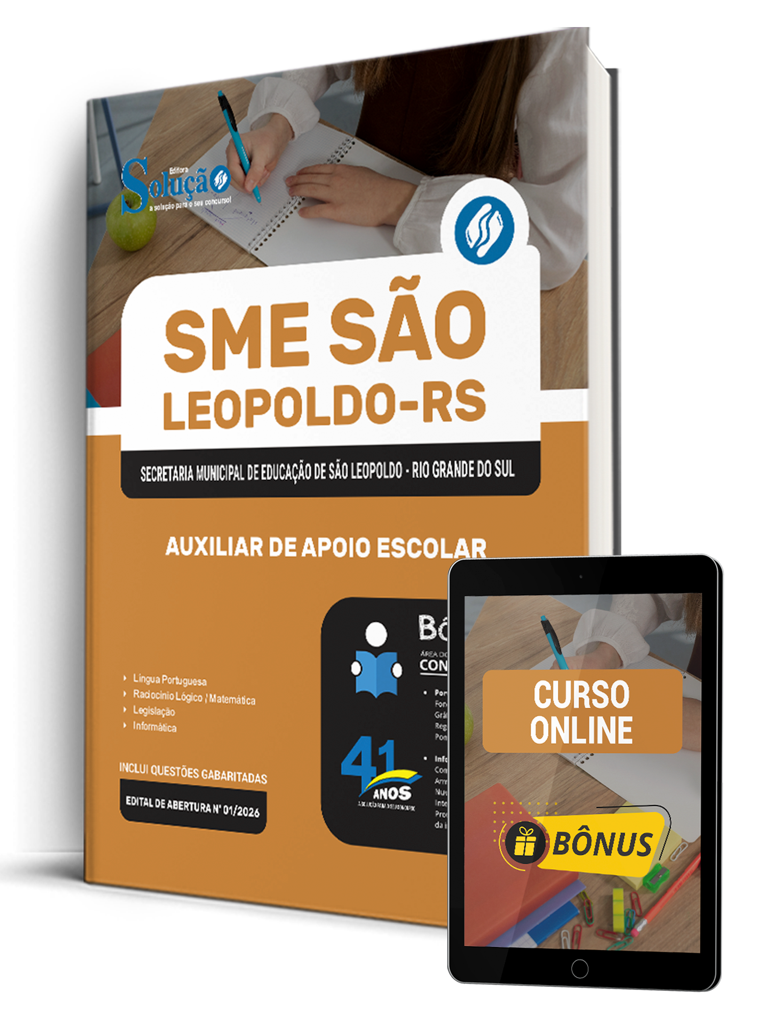 A Apostila Prefeitura Municipal de São Leopoldo - RS 2026 - Auxiliar de Apoio Escolar foi organizada para proporcionar um melhor rendimento na sua preparação, abordando cada conteúdo de forma objetiva e direcionada. Estude para o Concurso da Prefeitura Municipal de São Leopoldo - RS 2026 com um material de acordo com o Edital oficial para o cargo de Auxiliar de Apoio Escolar.
