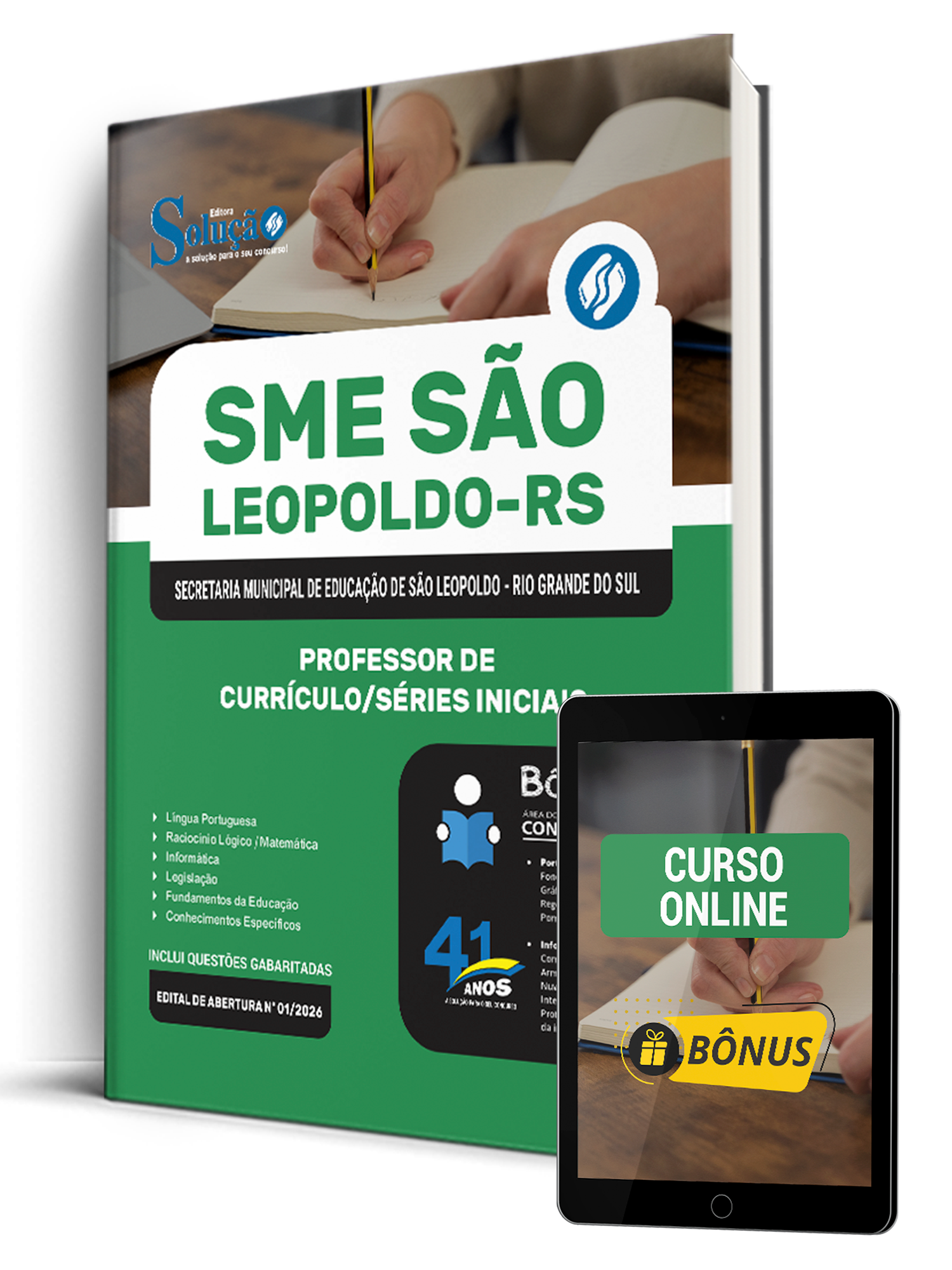 A Apostila Prefeitura Municipal de São Leopoldo - RS 2026 - Professor de Currículo/Séries Iniciais foi organizada para proporcionar um melhor rendimento na sua preparação, abordando cada conteúdo de forma objetiva e direcionada. Estude para o Concurso da Prefeitura Municipal de São Leopoldo - RS 2026 com um material de acordo com o Edital oficial para o cargo de Professor de Currículo/Séries Iniciais.