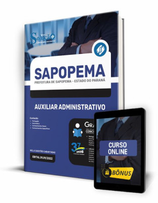 A Apostila Prefeitura de Sapopema - PR - Auxiliar Administrativo foi organizada para proporcionar um melhor rendimento na sua preparação, abordando cada conteúdo de forma objetiva e direcionada. Estude para o Concurso da Prefeitura de Sapopema - PR 2022 com um material de acordo com o Edital oficial para o cargo de Auxiliar Administrativo.