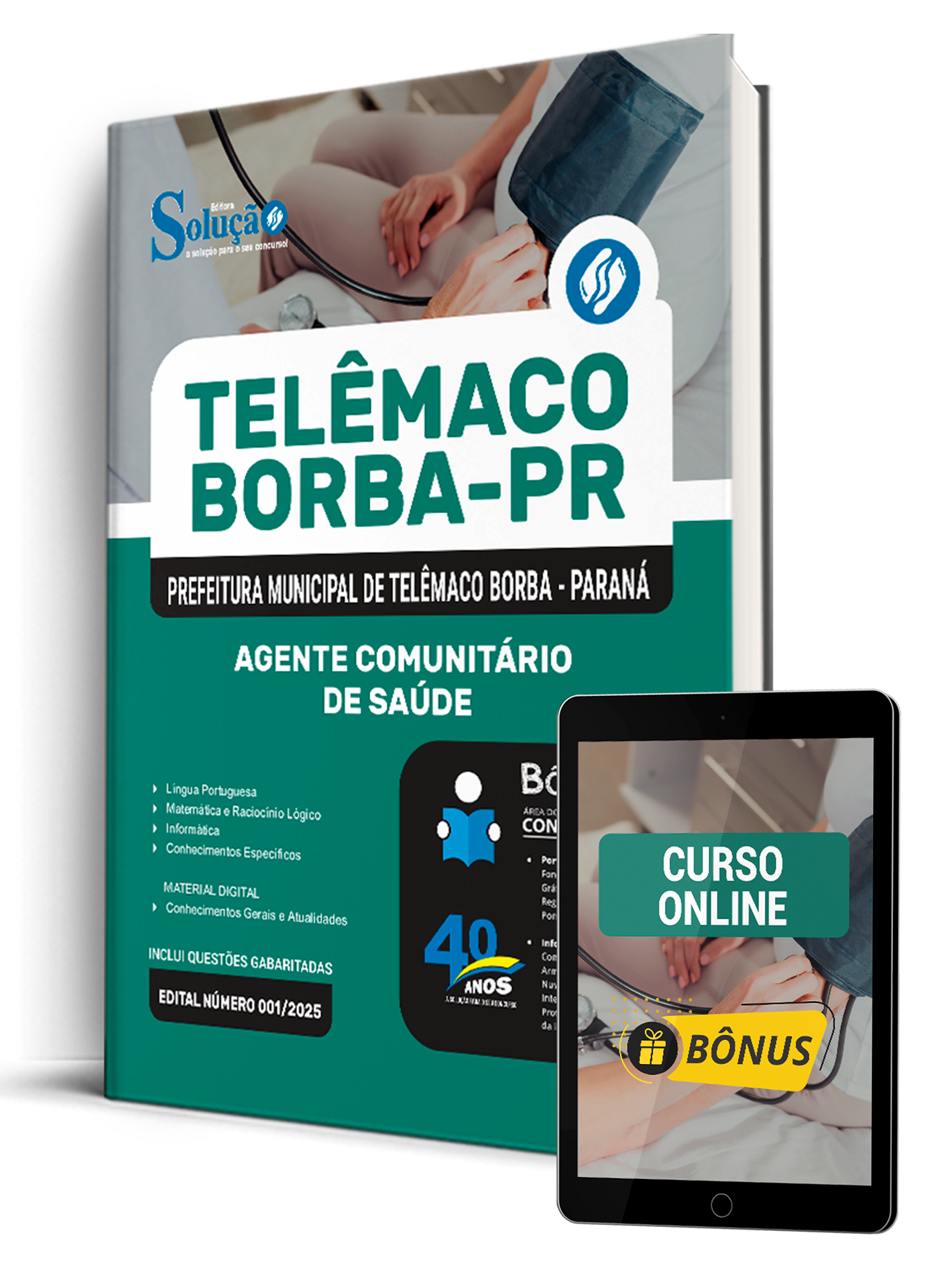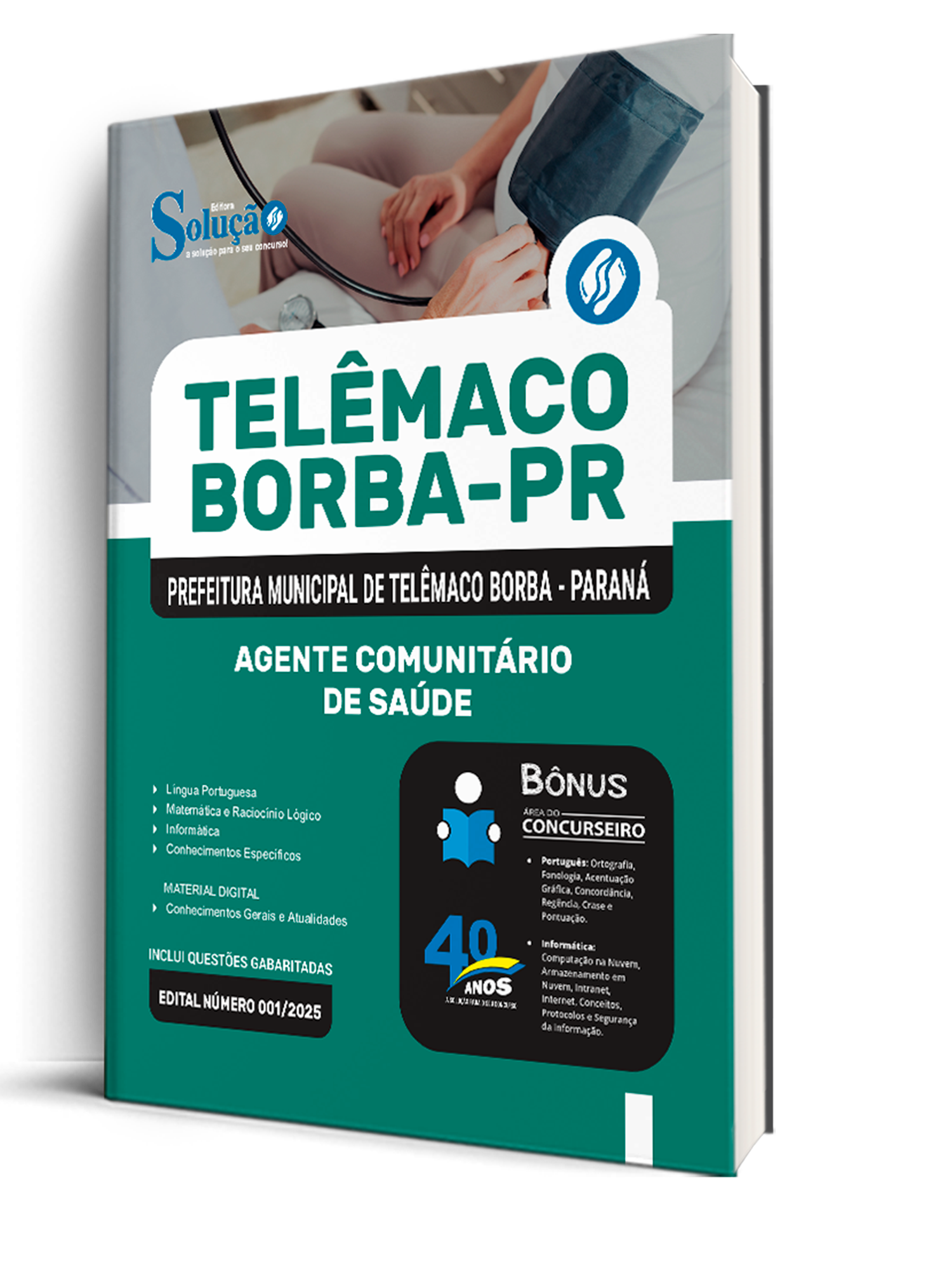A Apostila Prefeitura Municipal de Telêmaco Borba - PR 001 - 2025 - Agente Comunitário de Saúde foi organizada para proporcionar um melhor rendimento na sua preparação, abordando cada conteúdo de forma objetiva e direcionada. Estude para o Concurso da Prefeitura Municipal de Telêmaco Borba - PR 001 - 2025 com um material de acordo com o Edital oficial para o cargo de Agente Comunitário de Saúde.
