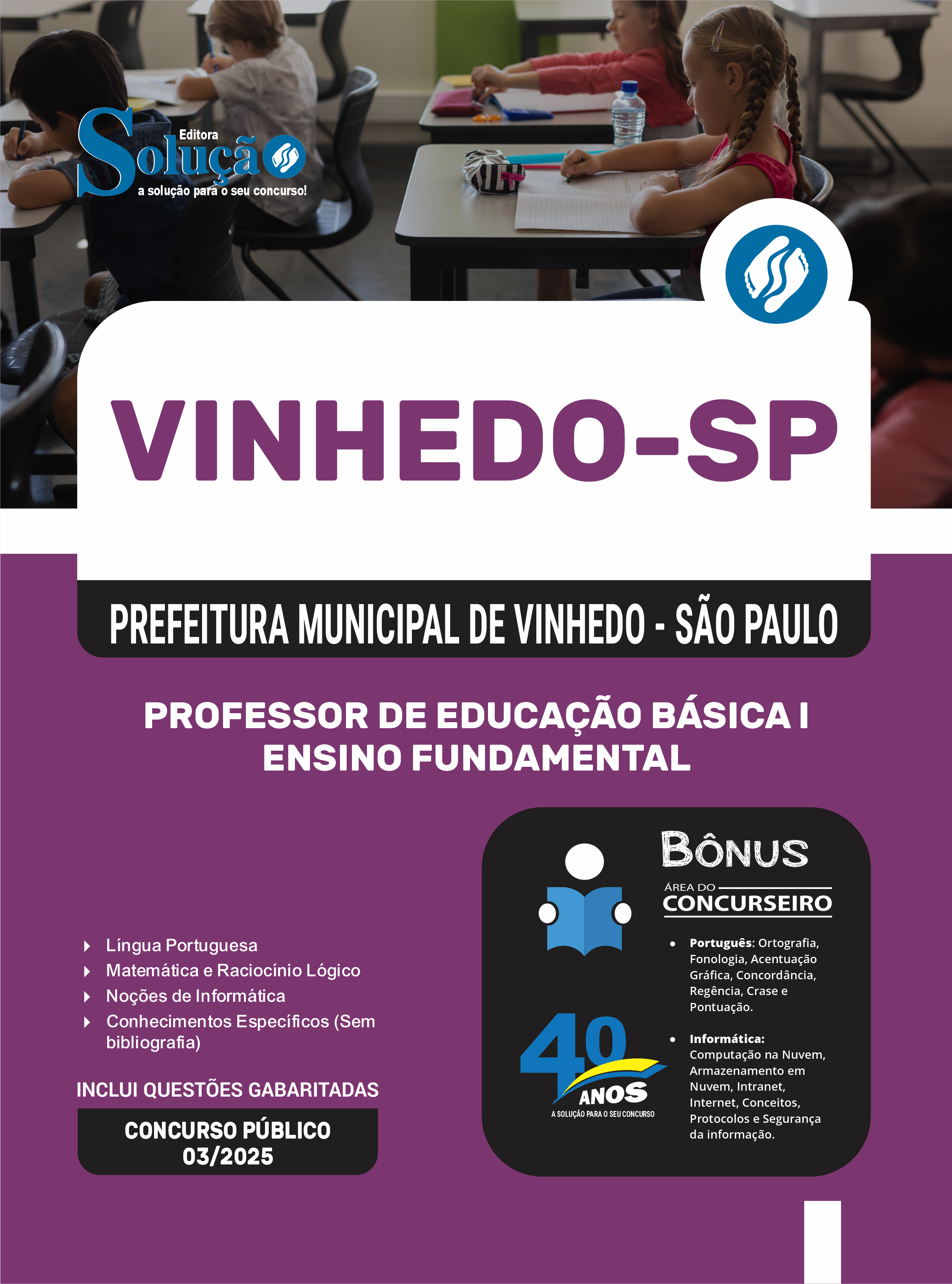 Apostila Prefeitura de Vinhedo - SP 2026 - Professor de Educação Básica I - Ensino Fundamental