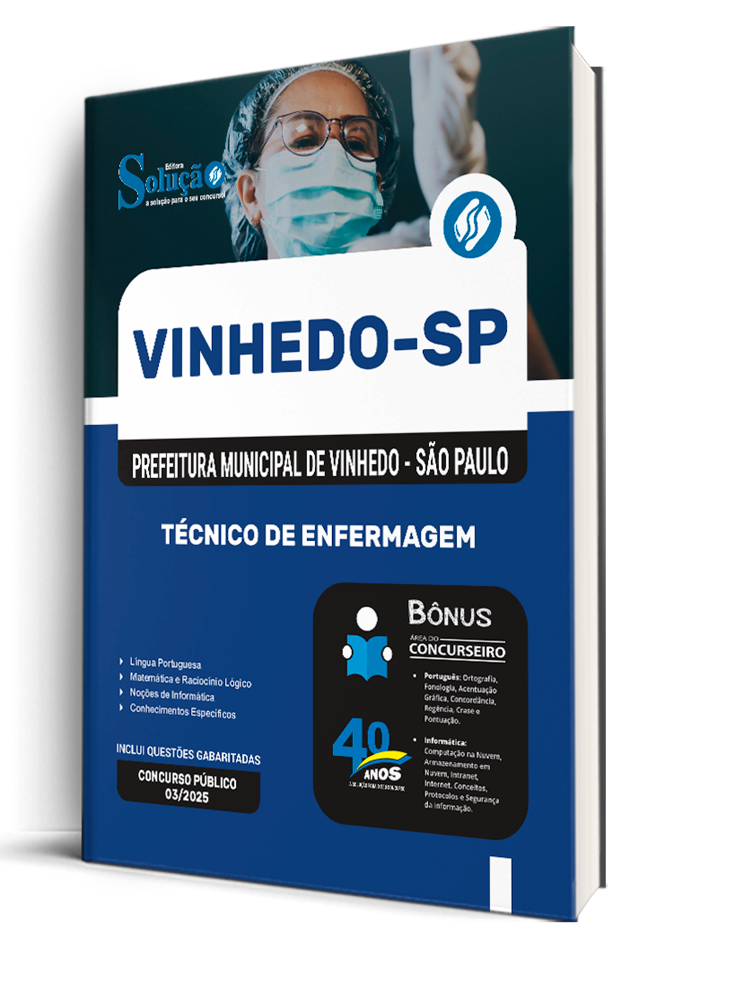 A Apostila Prefeitura Municipal de Vinhedo - SP 2025 - Técnico de Enfermagem foi organizada para proporcionar um melhor rendimento na sua preparação, abordando cada conteúdo de forma objetiva e direcionada. Estude para o Concurso da Prefeitura Municipal de Vinhedo - SP 2025 com um material de acordo com o Edital oficial para o cargo de Técnico de Enfermagem.