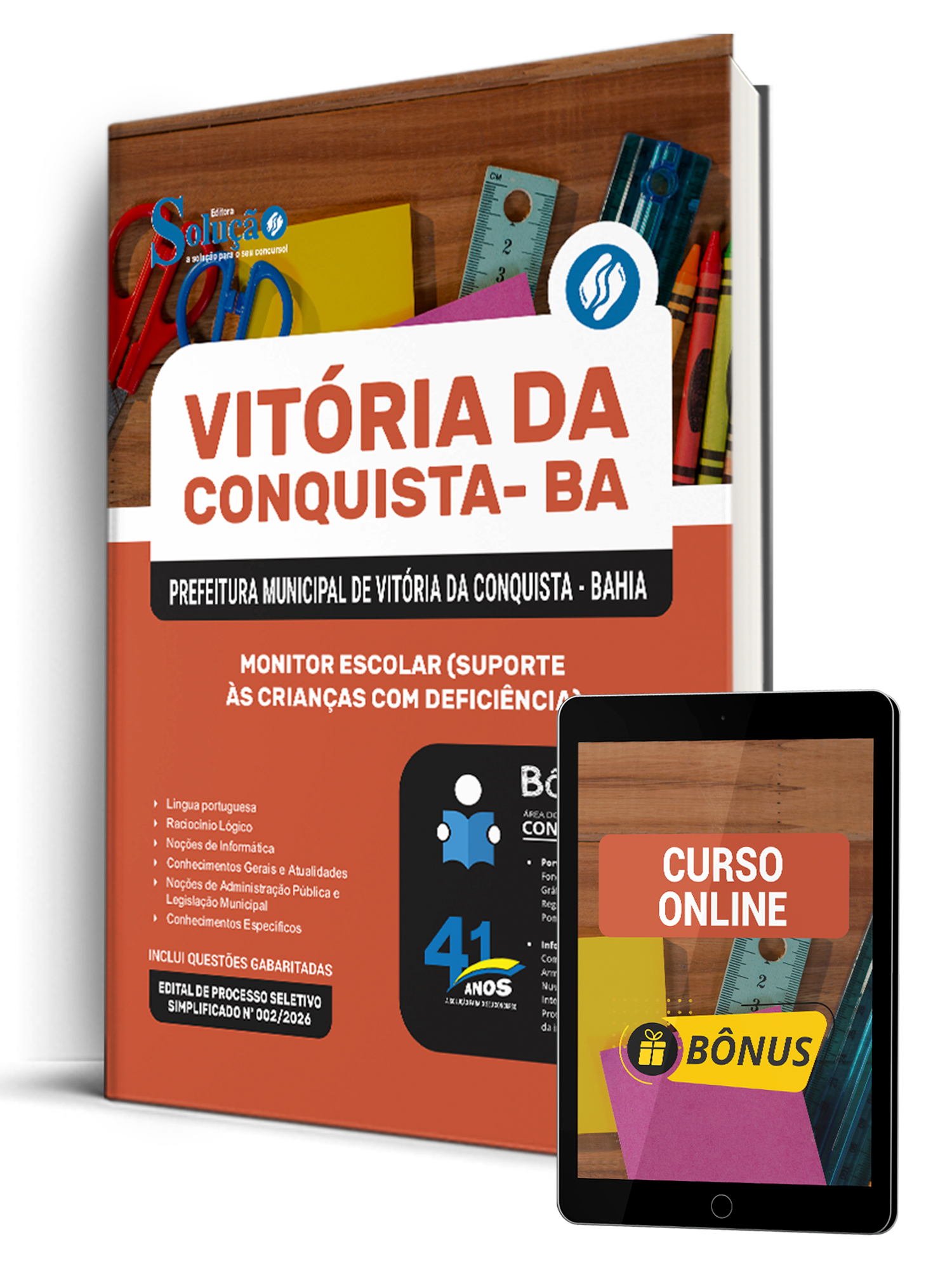 A Apostila Prefeitura Municipal de Vitória da Conquista - BA 2026 - Monitor Escolar (Suporte às Crianças com Deficiência) foi organizada para proporcionar um melhor rendimento na sua preparação, abordando cada conteúdo de forma objetiva e direcionada. Estude para o Concurso da Prefeitura Municipal de Vitória da Conquista - BA 2026 com um material de acordo com o Edital oficial para o cargo de Monitor Escolar (Suporte às Crianças com Deficiência).