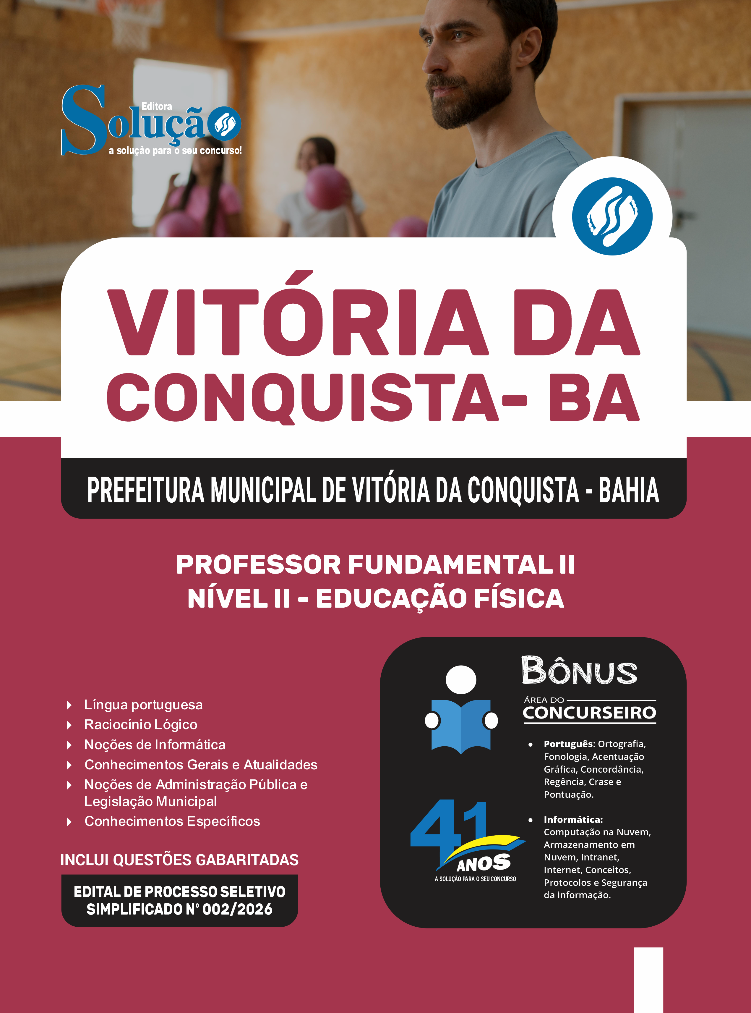A Apostila Prefeitura Municipal de Vitória da Conquista - BA 2026 - Professor Fundamental II Nível II - Educação Física foi organizada para proporcionar um melhor rendimento na sua preparação, abordando cada conteúdo de forma objetiva e direcionada. Estude para o Concurso da Prefeitura Municipal de Vitória da Conquista - BA 2026 com um material de acordo com o Edital oficial para o cargo de Professor Fundamental II Nível II - Educação Física.