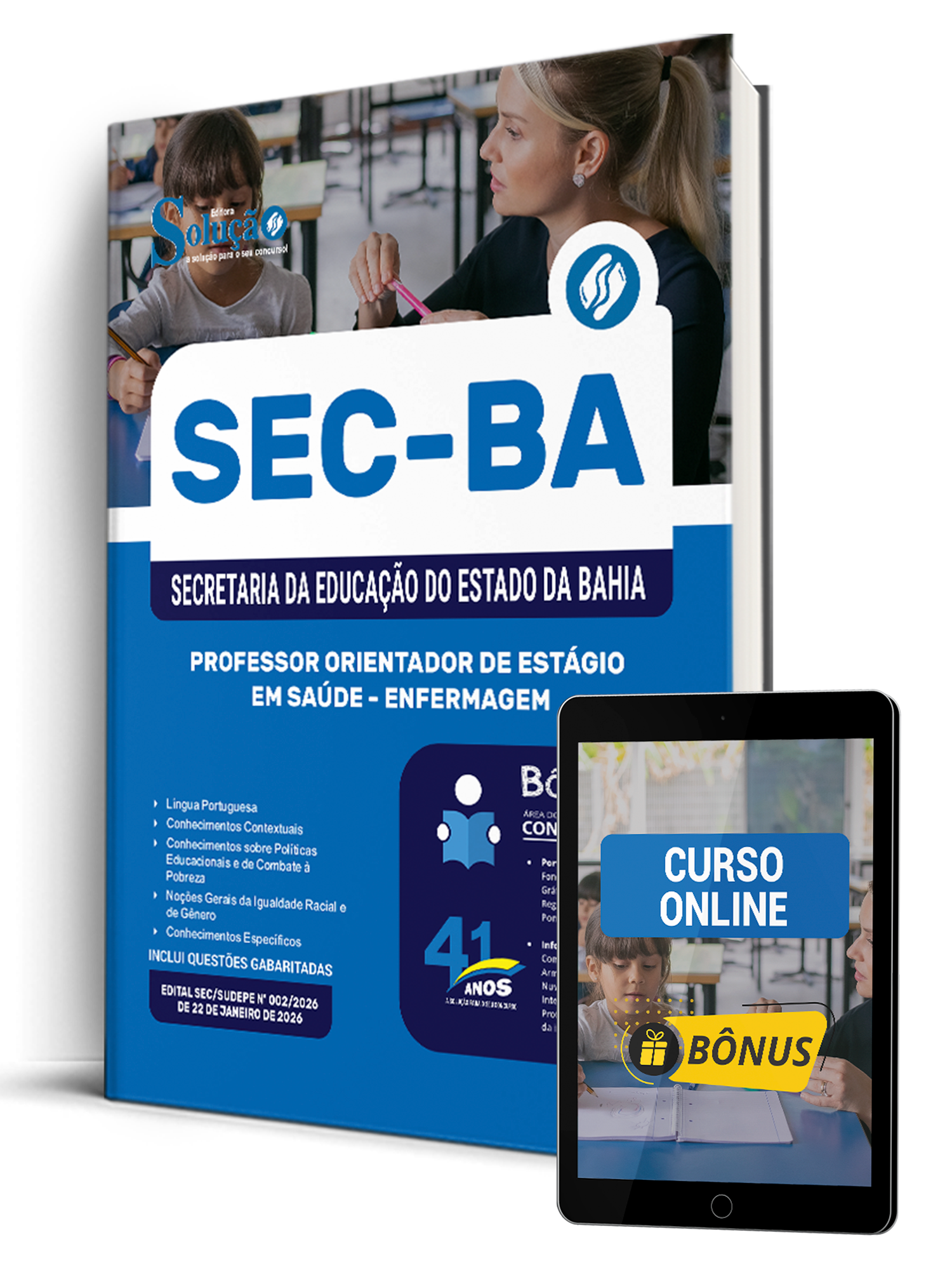 A Apostila Secretaria de Educação do Estado da Bahia 2026 - Professor Orientador de Estágio em Saúde - Enfermagem foi organizada para proporcionar um melhor rendimento na sua preparação, abordando cada conteúdo de forma objetiva e direcionada. Estude para o Concurso da Secretaria de Educação do Estado da Bahia 2026 com um material de acordo com o Edital oficial para o cargo de Professor Orientador de Estágio em Saúde - Enfermagem.