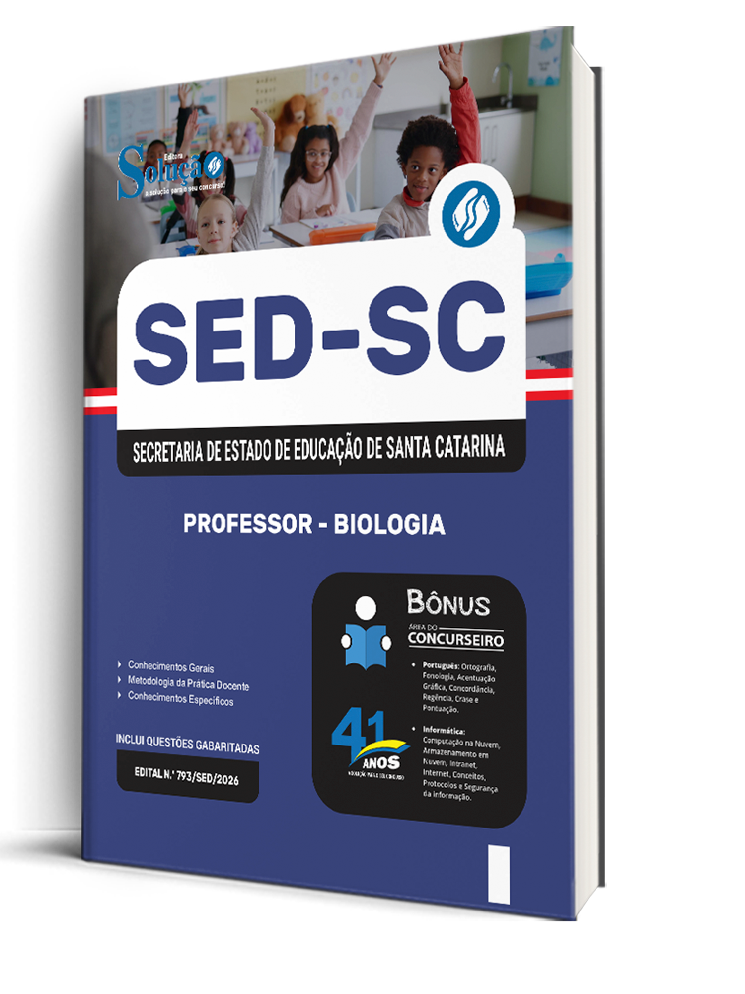 A Apostila Secretaria de Estado da Educação de Santa Catarina 2026 - Professor - Biologia foi organizada para proporcionar um melhor rendimento na sua preparação, abordando cada conteúdo de forma objetiva e direcionada. Estude para o Concurso da Secretaria de Estado da Educação de Santa Catarina 2026 com um material de acordo com o Edital oficial para o cargo de Professor - Biologia.