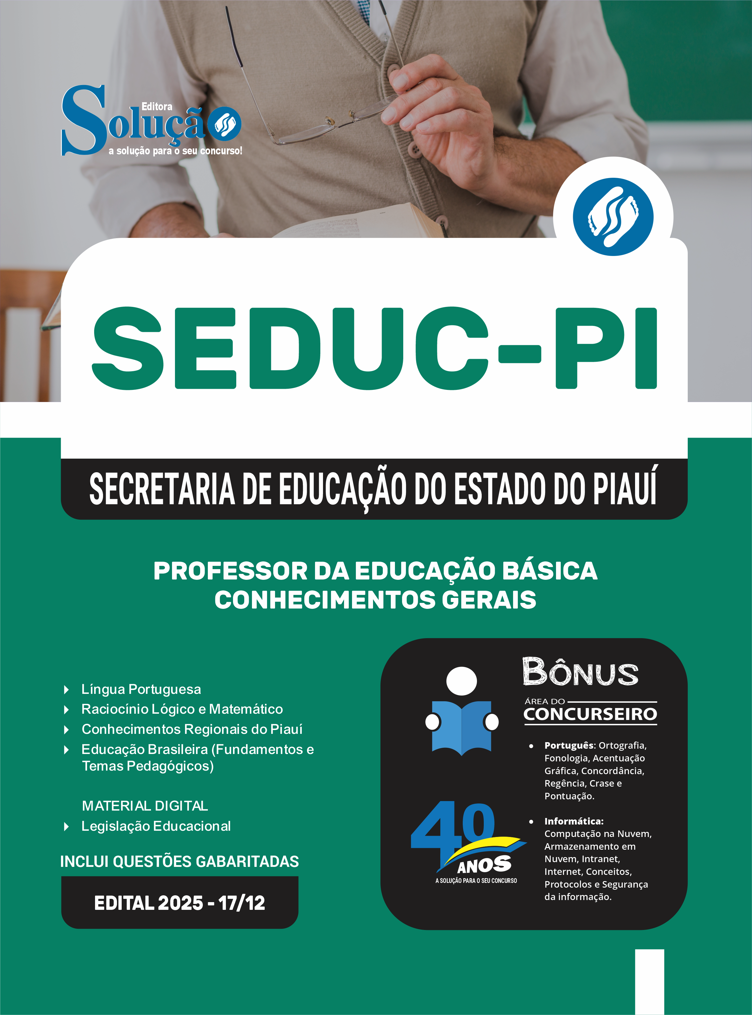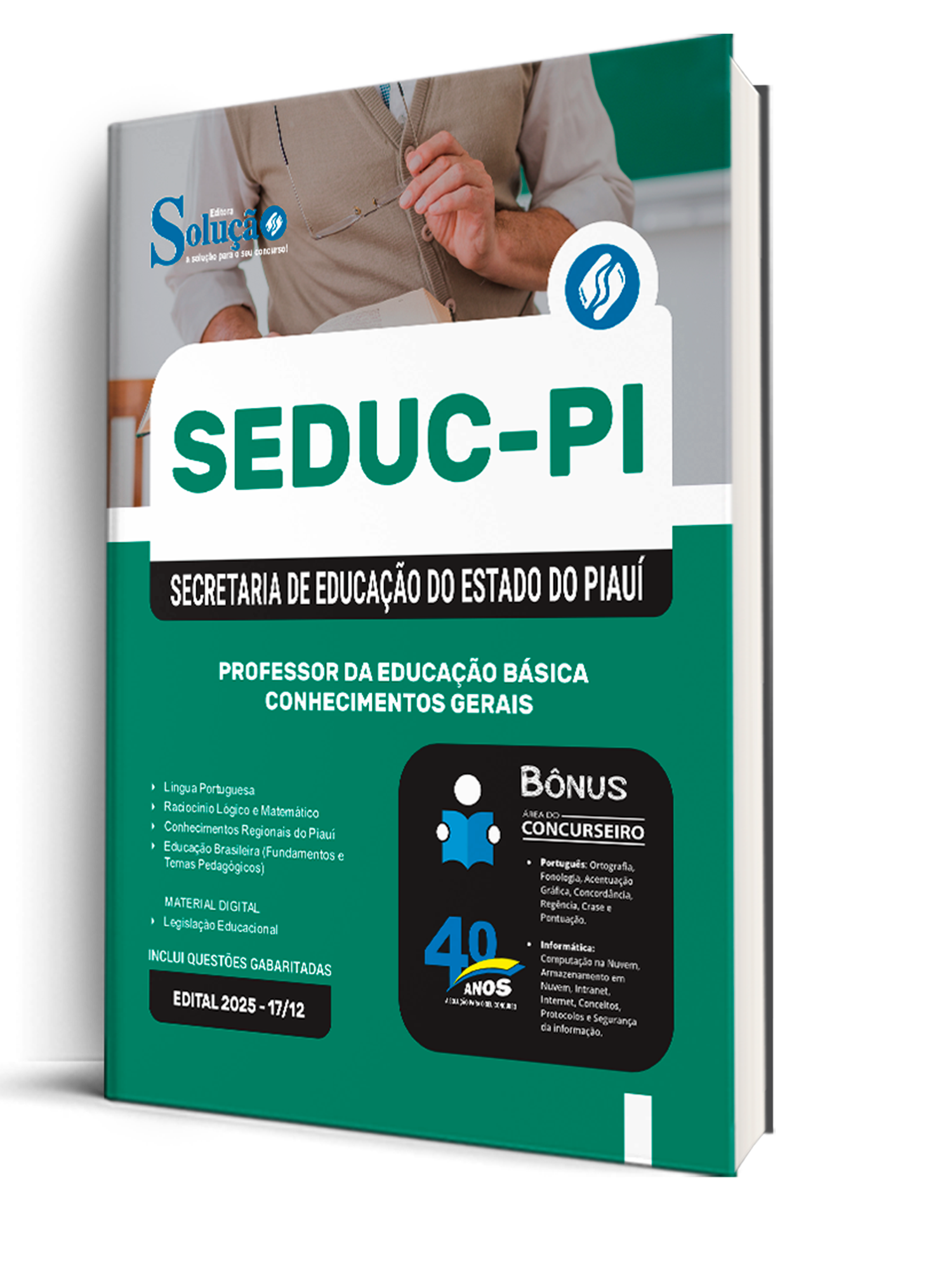 A Apostila Secretaria de Estado da Educação do Piauí 2025 - Professor da Educação Básica foi organizada para proporcionar um melhor rendimento na sua preparação, abordando cada conteúdo de forma objetiva e direcionada. Estude para o Concurso da Secretaria de Estado da Educação do Piauí 2025 com um material de acordo com o Edital oficial para o cargo de Professor da Educação Básica.