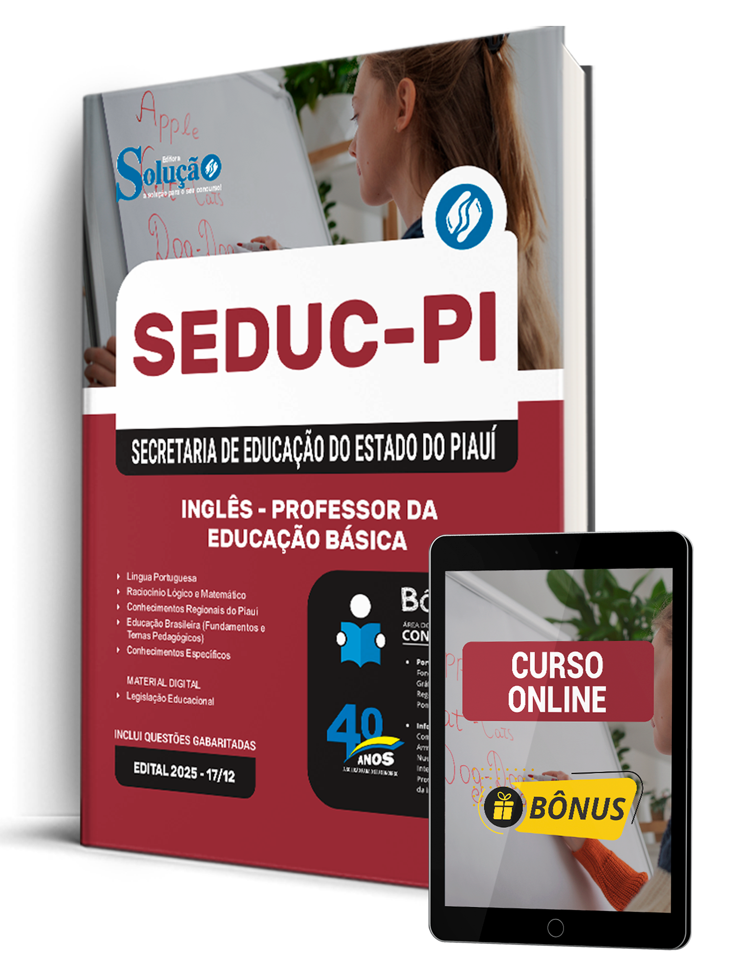 A Apostila Secretaria de Estado da Educação do Piauí Edital 2025 - Professor de Língua Inglesa foi organizada para proporcionar um melhor rendimento na sua preparação, abordando cada conteúdo de forma objetiva e direcionada. Estude para o Concurso da Secretaria de Estado da Educação do Piauí Edital 2025 com um material de acordo com o Edital oficial para o cargo de Professor de Língua Inglesa.