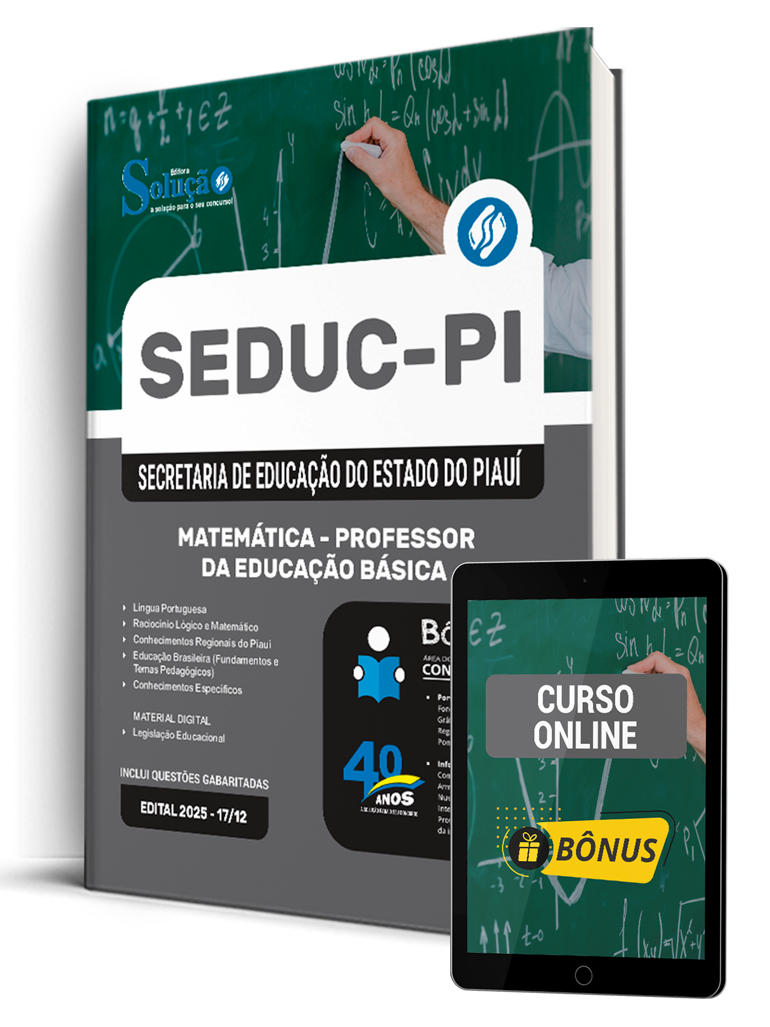 A Apostila Secretaria de Estado da Educação do Piauí Edital 2025 - Professor de Matemática foi organizada para proporcionar um melhor rendimento na sua preparação, abordando cada conteúdo de forma objetiva e direcionada. Estude para o Concurso da Secretaria de Estado da Educação do Piauí Edital 2025 com um material de acordo com o Edital oficial para o cargo de Professor de Matemática.