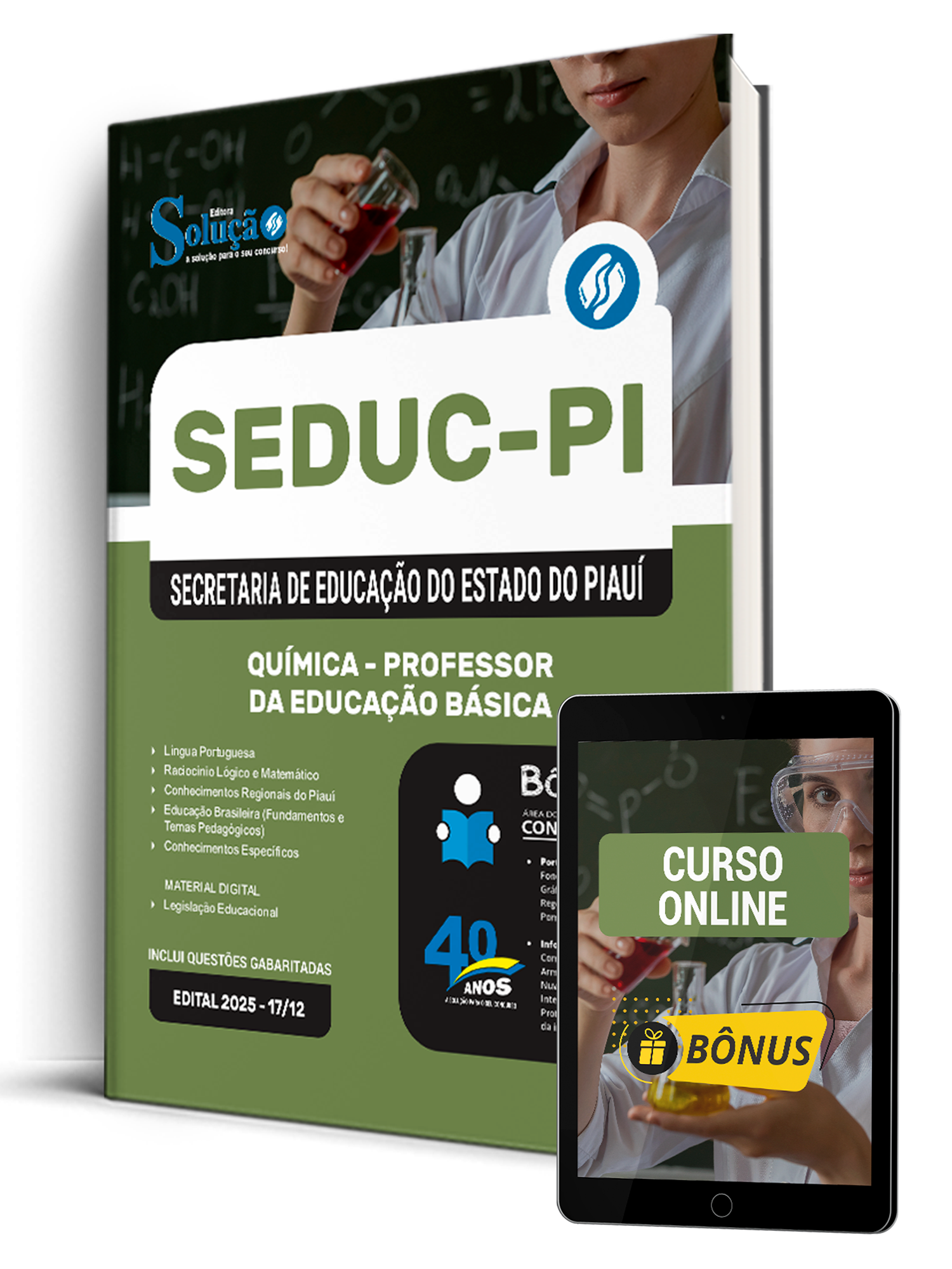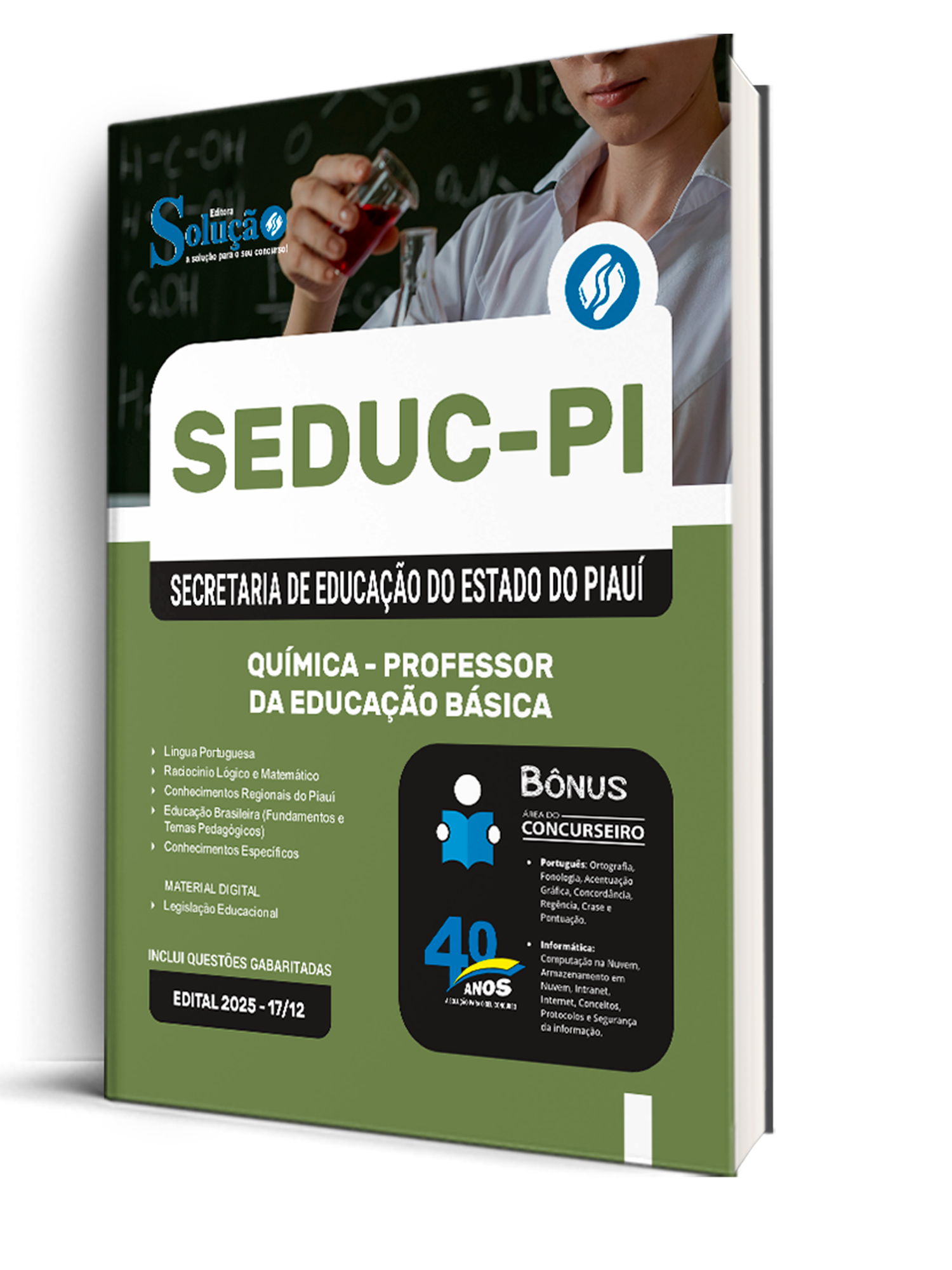 A Apostila Secretaria de Estado da Educação do Piauí 2026 - Professor de Química foi organizada para proporcionar um melhor rendimento na sua preparação, abordando cada conteúdo de forma objetiva e direcionada. Estude para o Concurso da Secretaria de Estado da Educação do Piauí 2026 com um material de acordo com o Edital oficial para o cargo de Professor de Química.