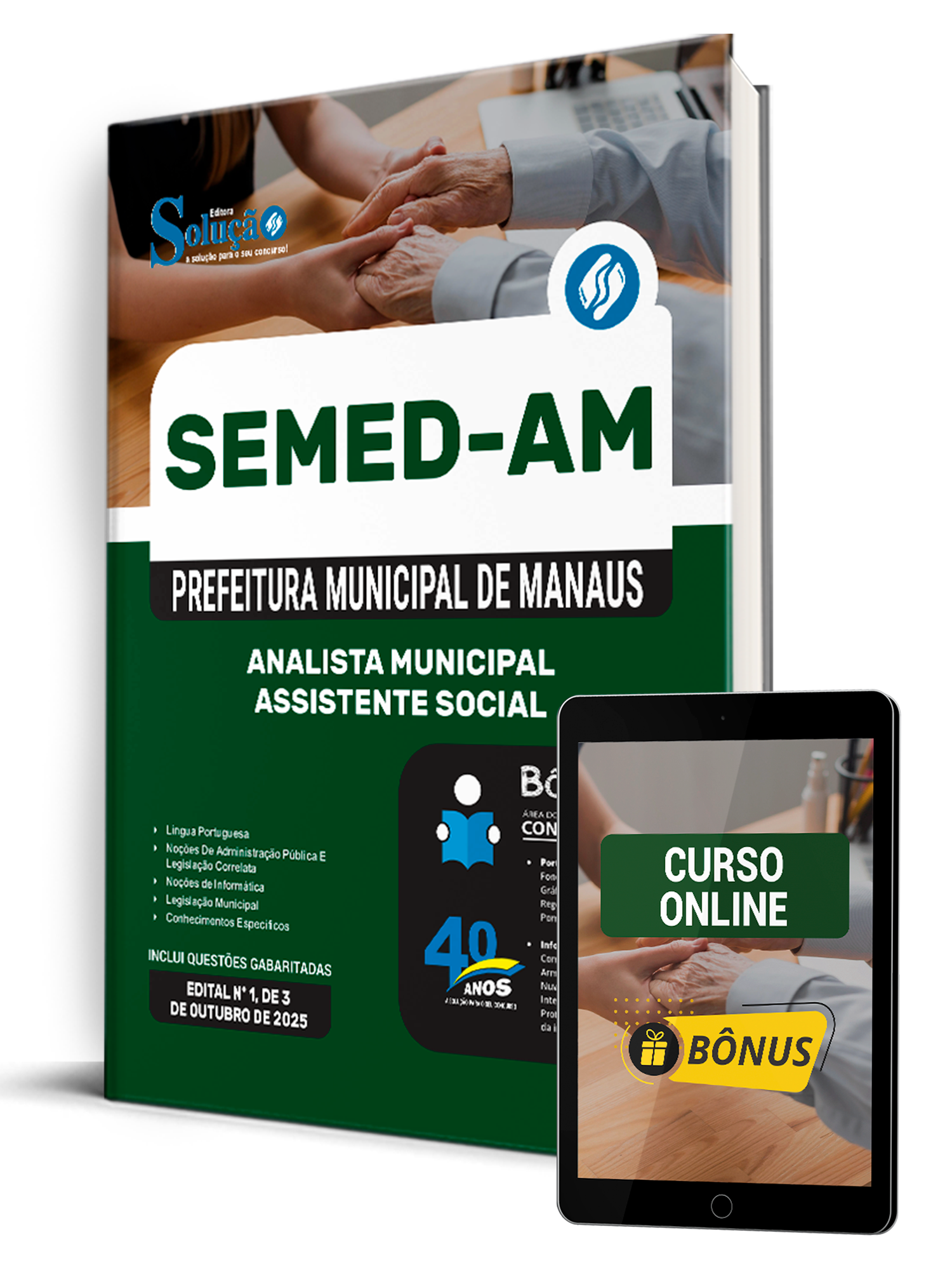 A Apostila Secretaria Municipal de Educação de Manaus - AM 2025 - Analista Municipal - Assistente Social foi organizada para proporcionar um melhor rendimento na sua preparação, abordando cada conteúdo de forma objetiva e direcionada. Estude para o Concurso da Secretaria Municipal de Educação de Manaus - AM 2025 com um material de acordo com o Edital oficial para o cargo de Analista Municipal - Assistente Social.