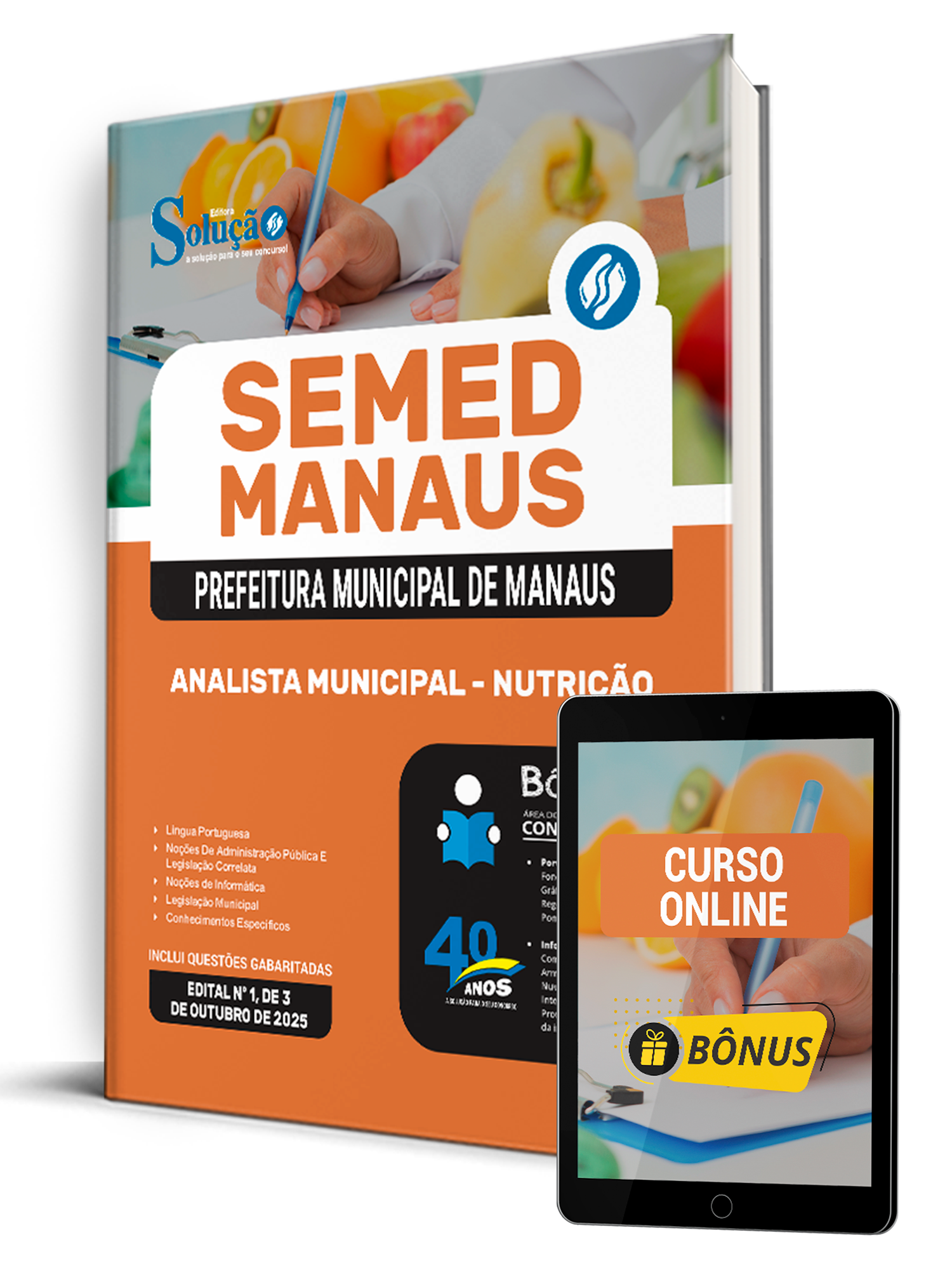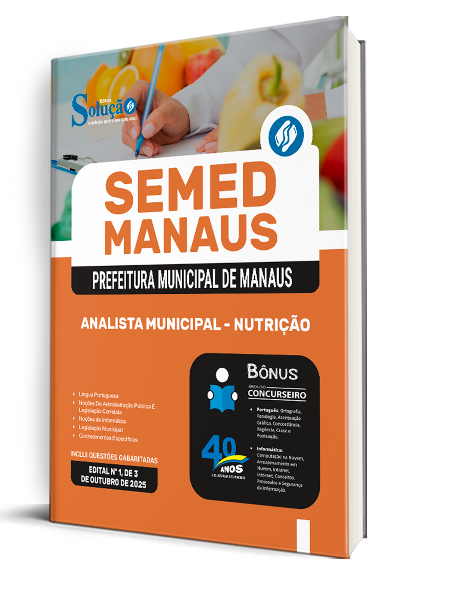 A Apostila Secretaria Municipal de Educação de Manaus - AM 2025 - Analista Municipal - Nutrição foi organizada para proporcionar um melhor rendimento na sua preparação, abordando cada conteúdo de forma objetiva e direcionada. Estude para o Concurso da Secretaria Municipal de Educação de Manaus - AM 2025 com um material de acordo com o Edital oficial para o cargo de Analista Municipal - Nutrição.