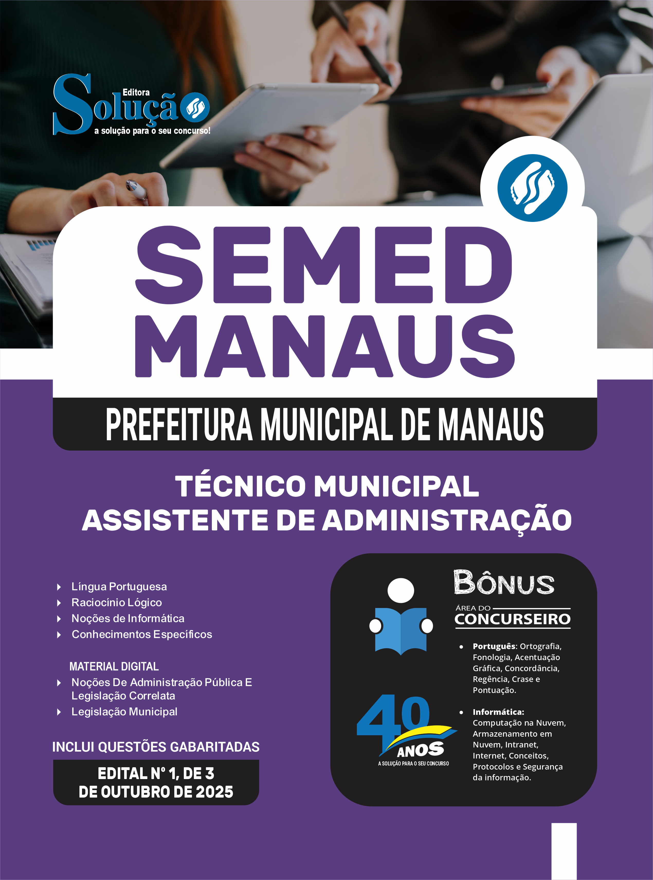 Apostila SEMED MANAUS 2026 em PDF - Técnico Municipal - Assistente de Administração