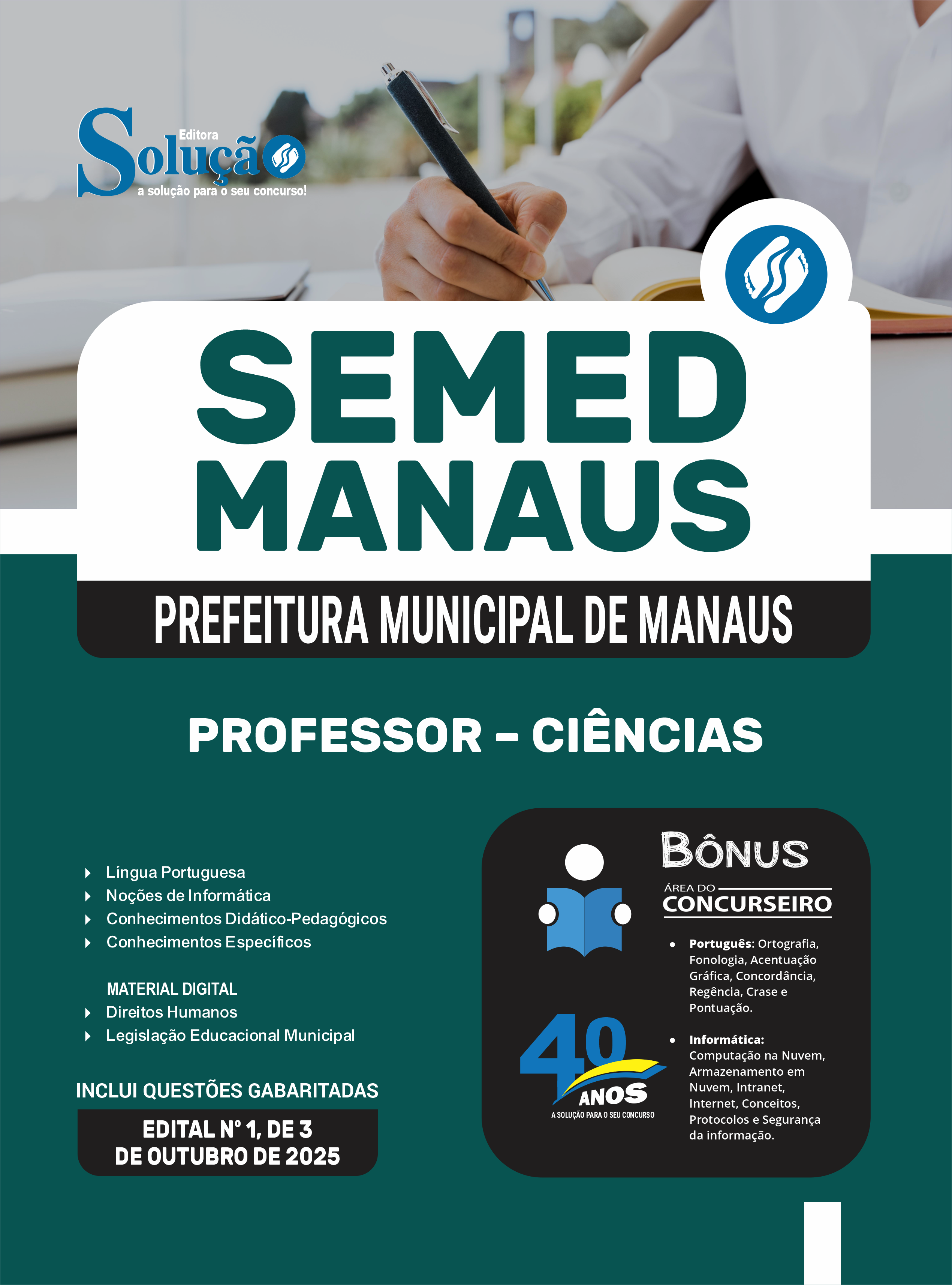 A Apostila Secretaria Municipal de Educação de Manaus - AM 1 - 2025 - Professor Nível Superior - Ciências foi organizada para proporcionar um melhor rendimento na sua preparação, abordando cada conteúdo de forma objetiva e direcionada. Estude para o Concurso da Secretaria Municipal de Educação de Manaus - AM 1 - 2025 com um material de acordo com o Edital oficial para o cargo de Professor Nível Superior - Ciências.
