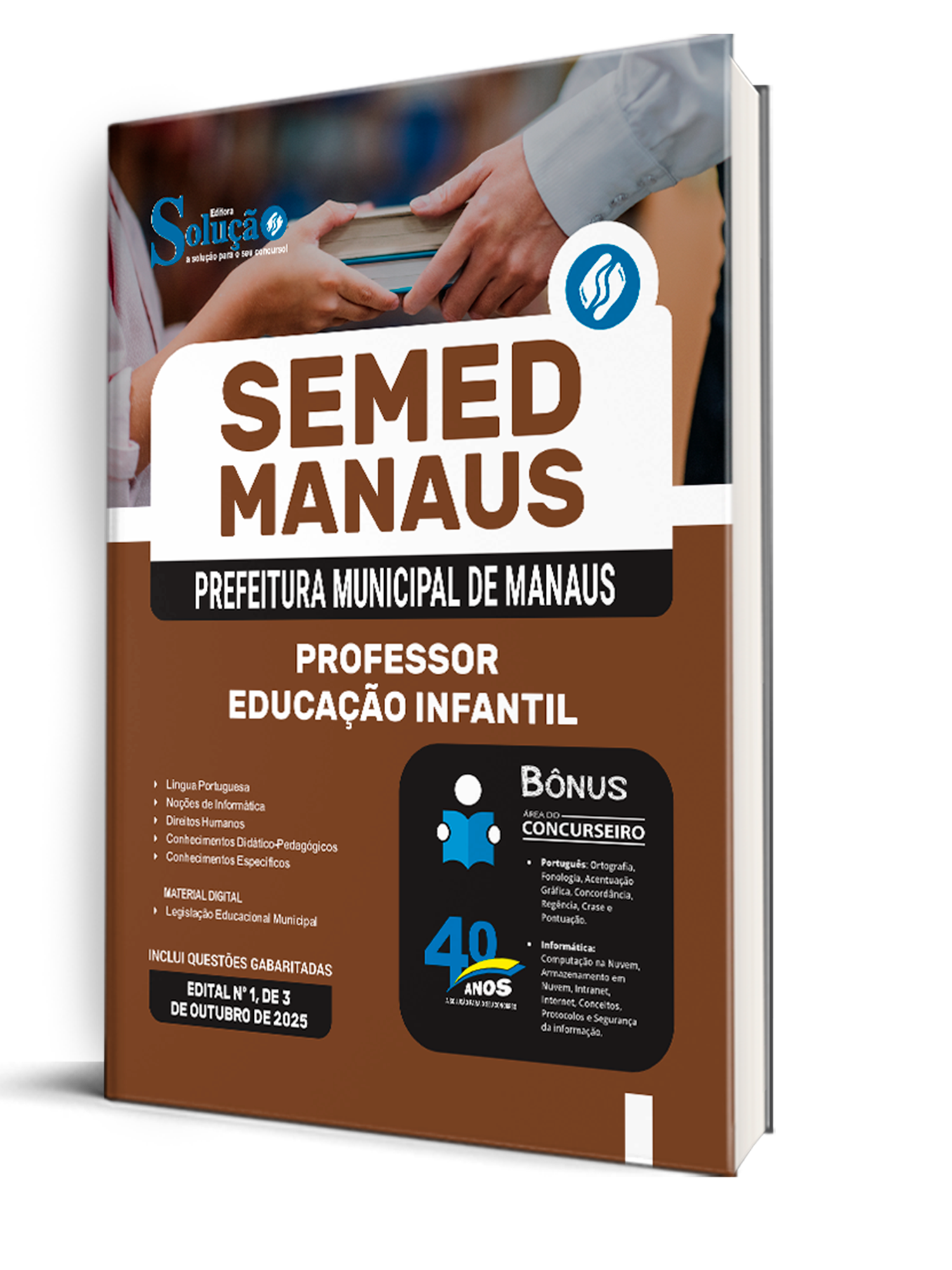 A Apostila Secretaria Municipal de Educação de Manaus - AM 2025 - Professor - Educação Infantil foi organizada para proporcionar um melhor rendimento na sua preparação, abordando cada conteúdo de forma objetiva e direcionada. Estude para o Concurso da Secretaria Municipal de Educação de Manaus - AM 2025 com um material de acordo com o Edital oficial para o cargo de Professor Nível Superior - Educação Infantil.