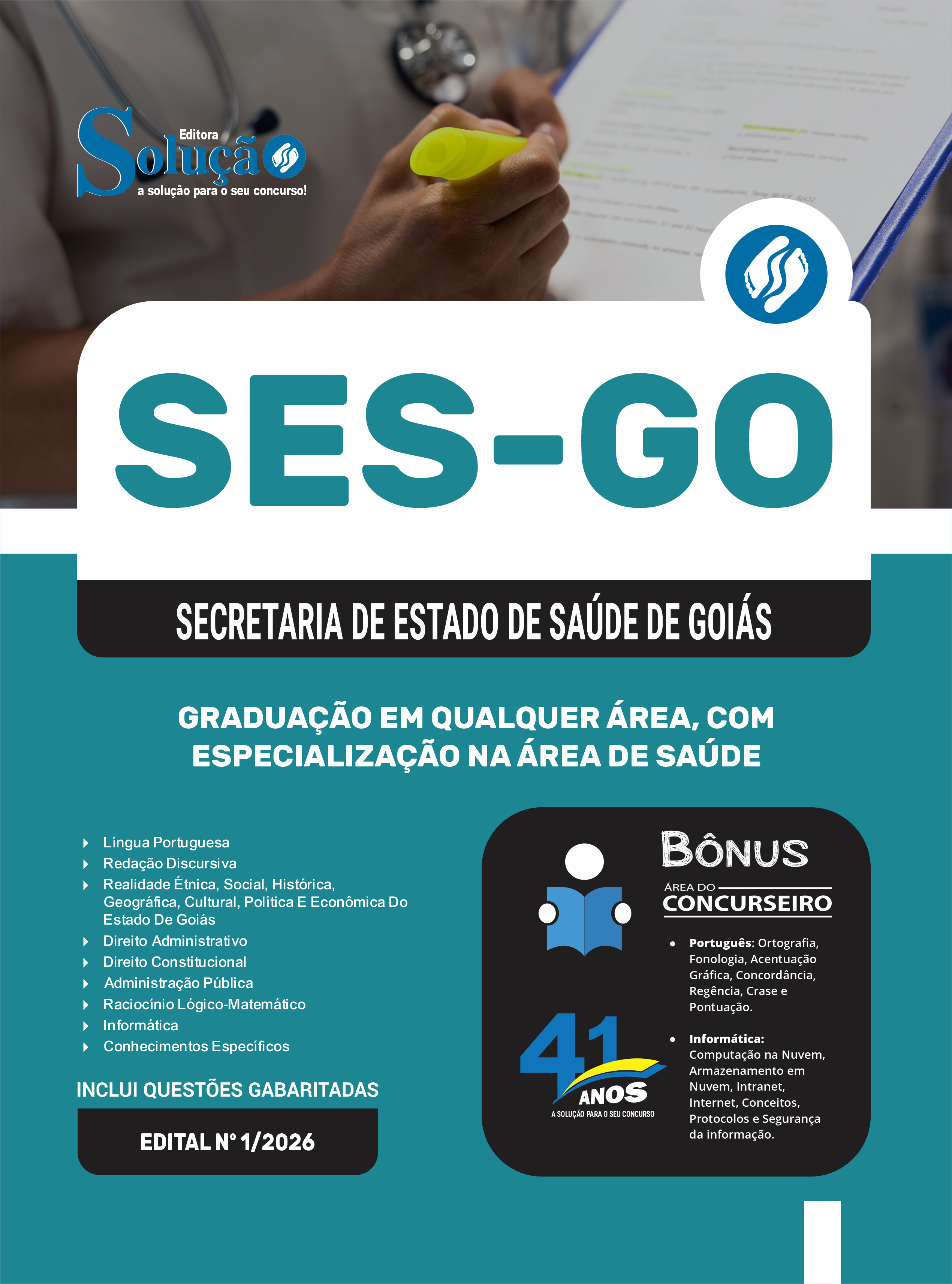 A Apostila Secretaria do Estado da Saúde de Goiás 2026 - Categoria III: Graduação em Qualquer Área, com Especialização na Área de Saúde foi organizada para proporcionar um melhor rendimento na sua preparação, abordando cada conteúdo de forma objetiva e direcionada. Estude para o Concurso da Secretaria do Estado da Saúde de Goiás 2026 com um material de acordo com o Edital oficial para o cargo de Categoria III: Graduação em Qualquer Área, com Especialização na Área de Saúde.