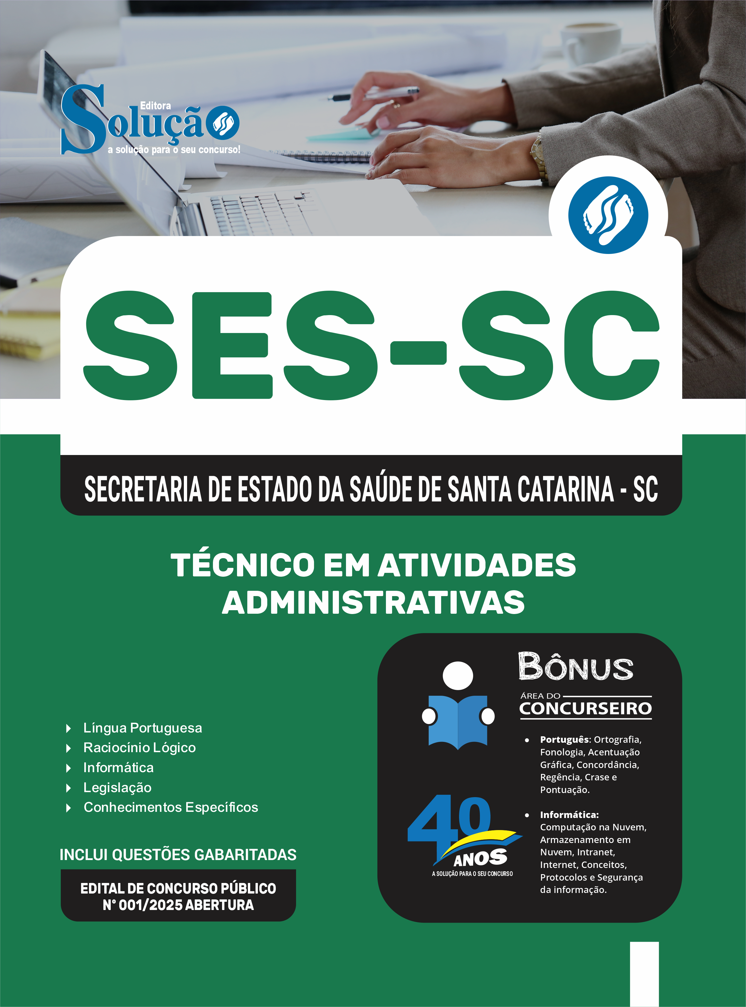 Apostila SES-SC em PDF 2025 - Técnico em Atividades Administrativas