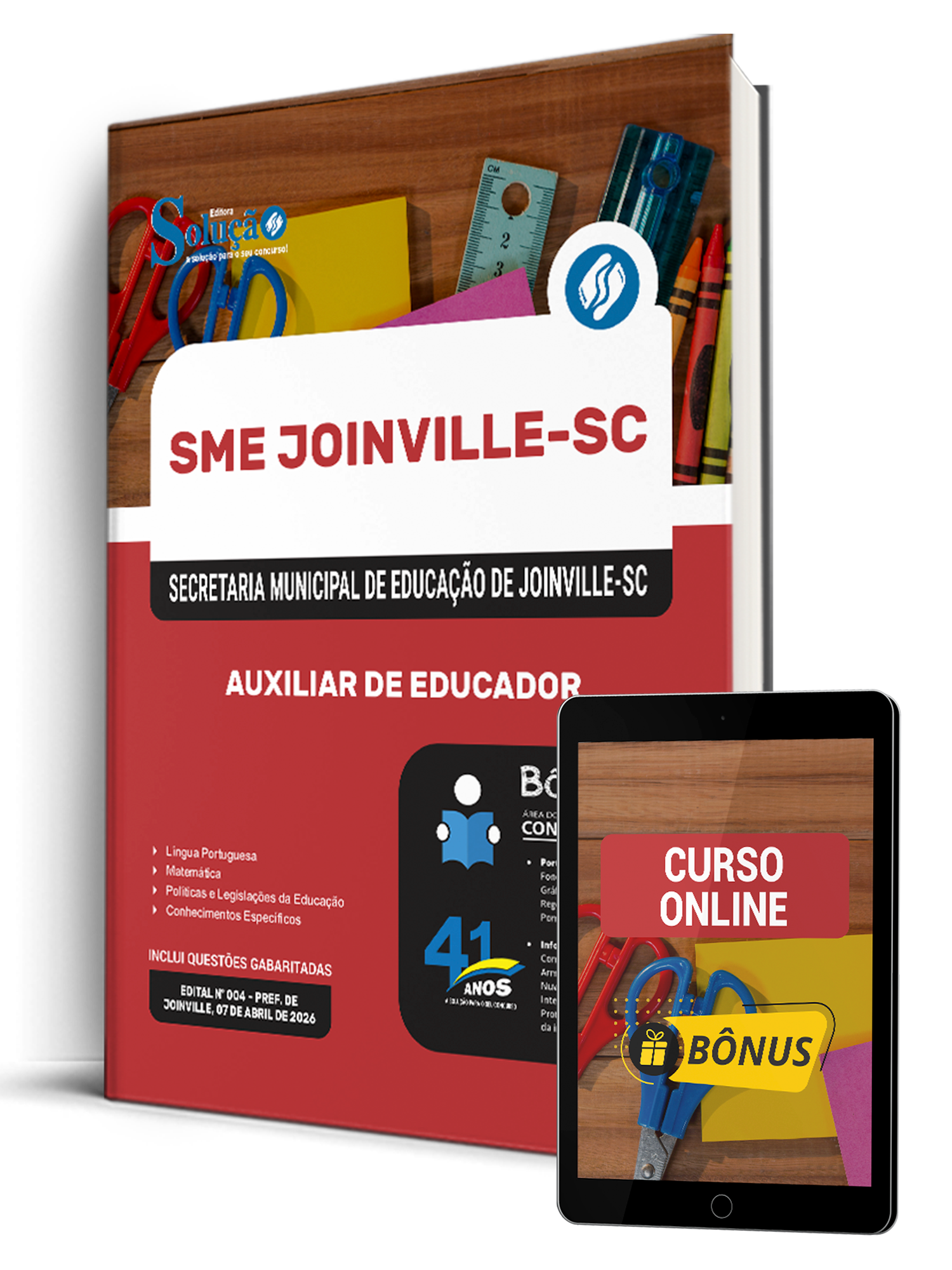 A Apostila Secretaria Municipal de Educação de Joinville-SC 2026 - Auxiliar de Educador foi organizada para proporcionar um melhor rendimento na sua preparação, abordando cada conteúdo de forma objetiva e direcionada. Estude para o Concurso da Secretaria Municipal de Educação de Joinville-SC 2026 com um material de acordo com o Edital oficial para o cargo de Auxiliar de Educador.