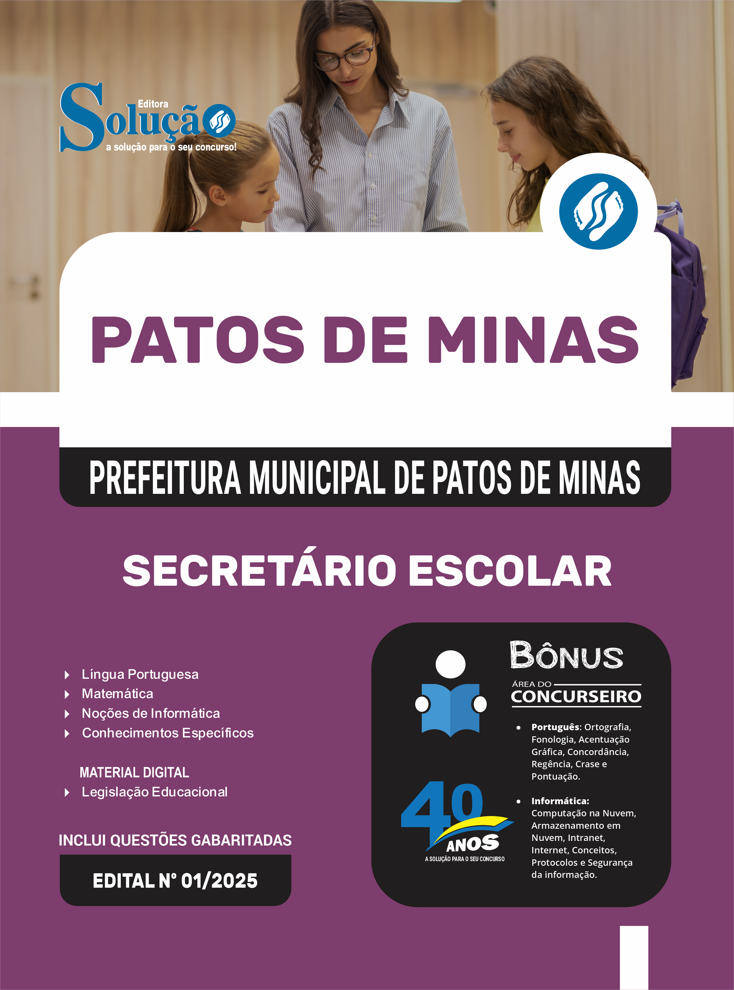 Apostila SME Patos de Minas-MG 2025 - Secretário Escolar