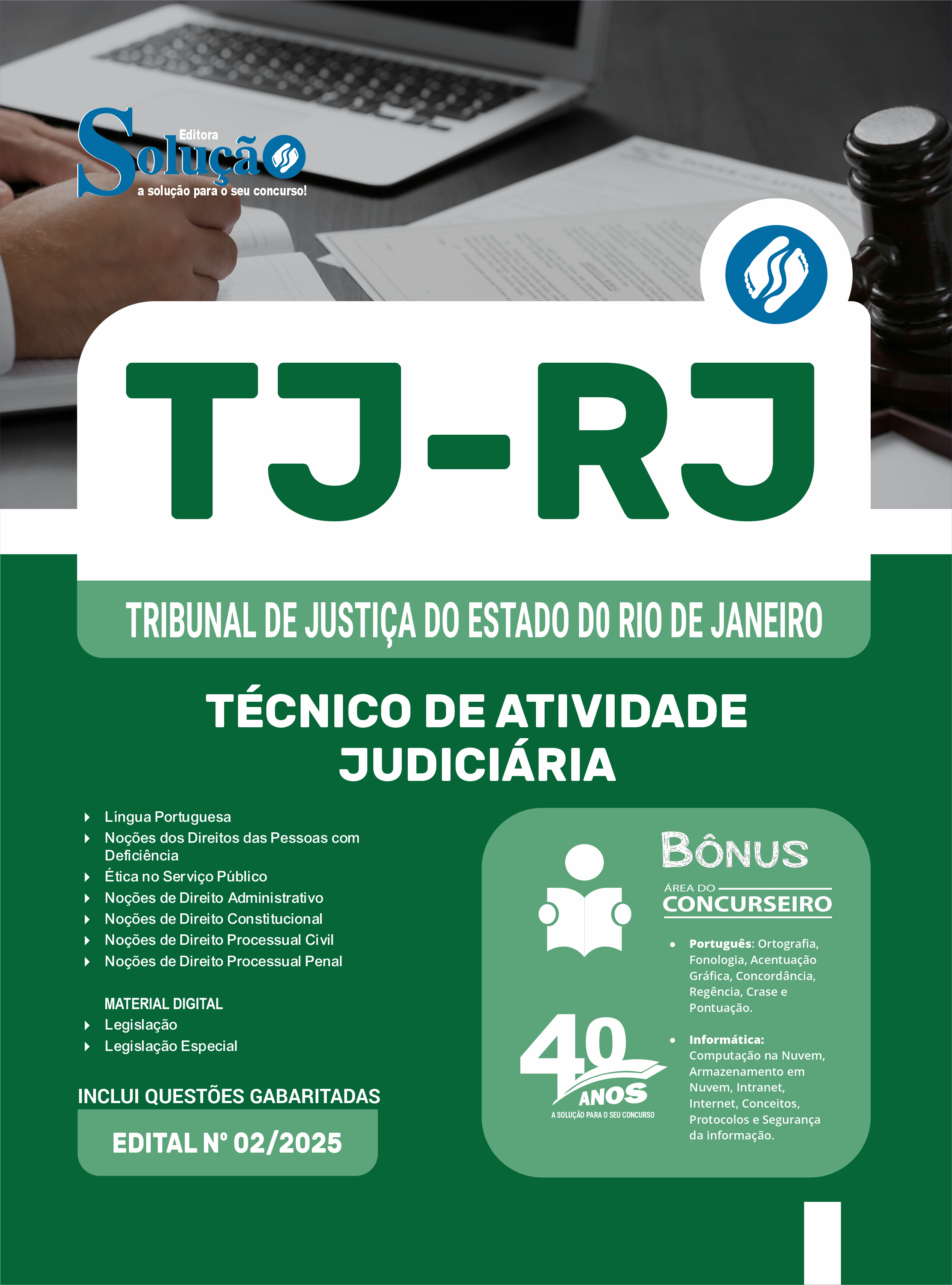 A Apostila Digital Tribunal de Justiça do Rio de Janeiro em PDF 2025 - Técnico de Atividade Judiciária foi organizada para proporcionar um melhor rendimento na sua preparação, abordando cada conteúdo de forma objetiva e direcionada. Estude para o Concurso da Tribunal de Justiça do Rio de Janeiro 2025 com um material de acordo com o Edital oficial para o cargo de Técnico de Atividade Judiciária.